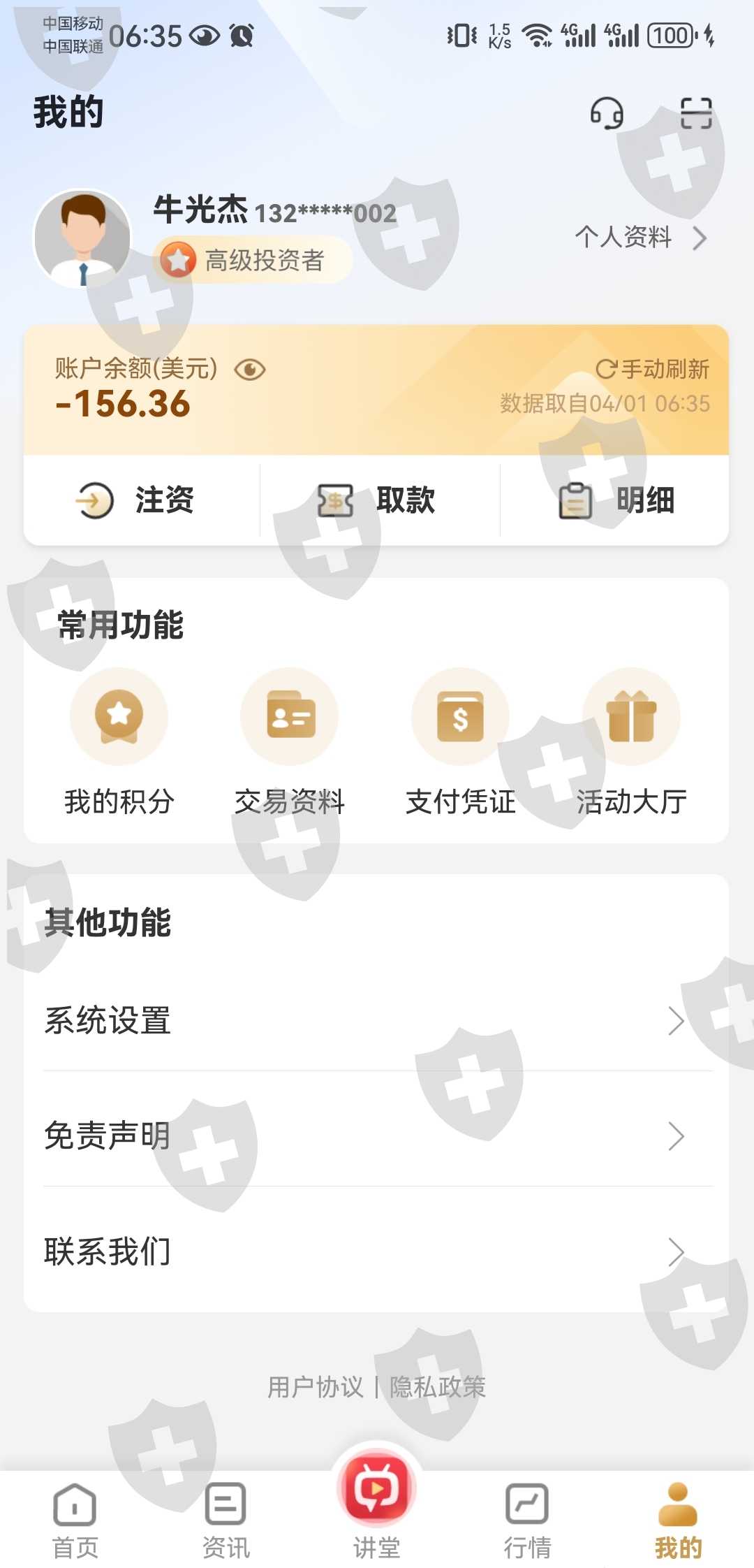 与国际平台的封盘/开盘时间不符,领峰平台设置的是100%低于将会强制平仓,但4/1号早晨开盘后账户余额直接显示负数才强制平仓,如按照平台设定的100%保证金低于就平仓的话,我的本金起码可以保住。问了客服,客服不给解决,说系统就这样。