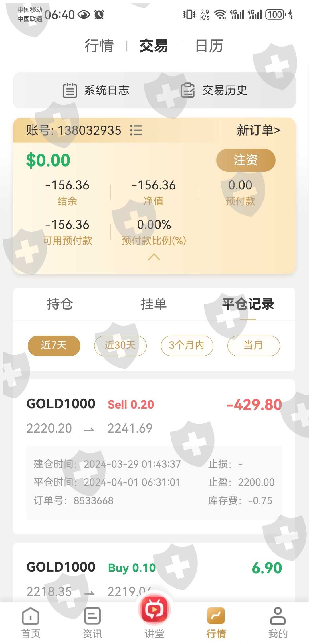 与国际平台的封盘/开盘时间不符,领峰平台设置的100%低于将会强制平仓,但未强制平仓导致账户金额负数