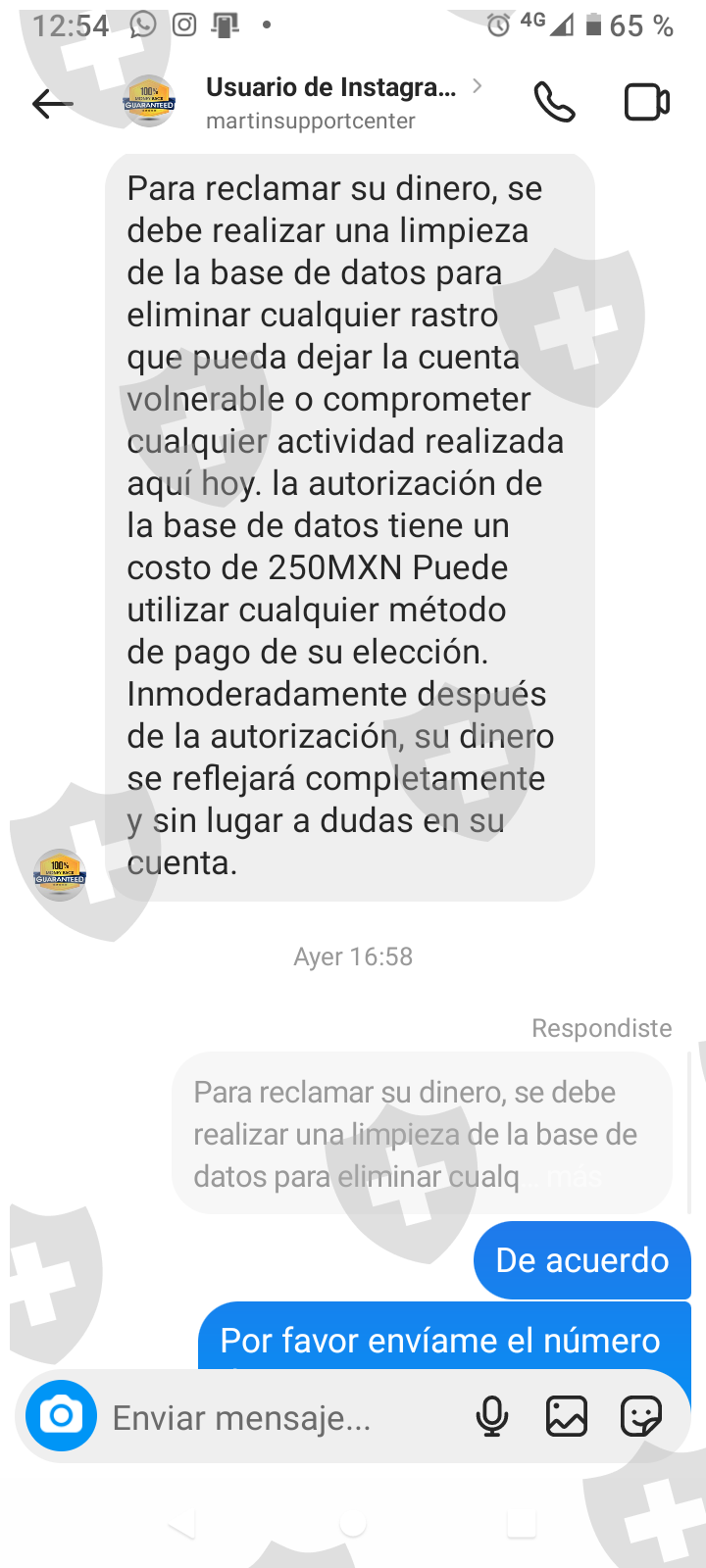 前天,我通过一个名为 marquetin de Mercado 的在线平台被骗,最终我损失了 2,673 美元,指望一个声称要帮助我的人付款,但他最终通过要求预付 860 比索来欺骗我,另一个骗子要求他注册平台要300美元,我真的觉得自己很愚蠢,相信这样的废话。