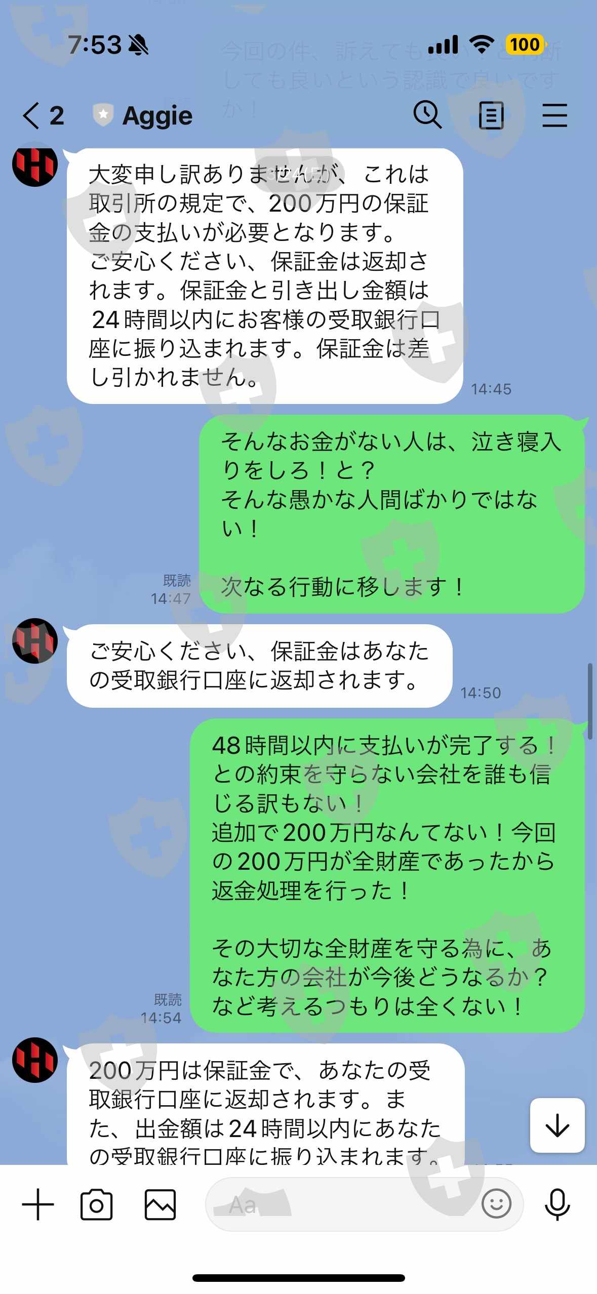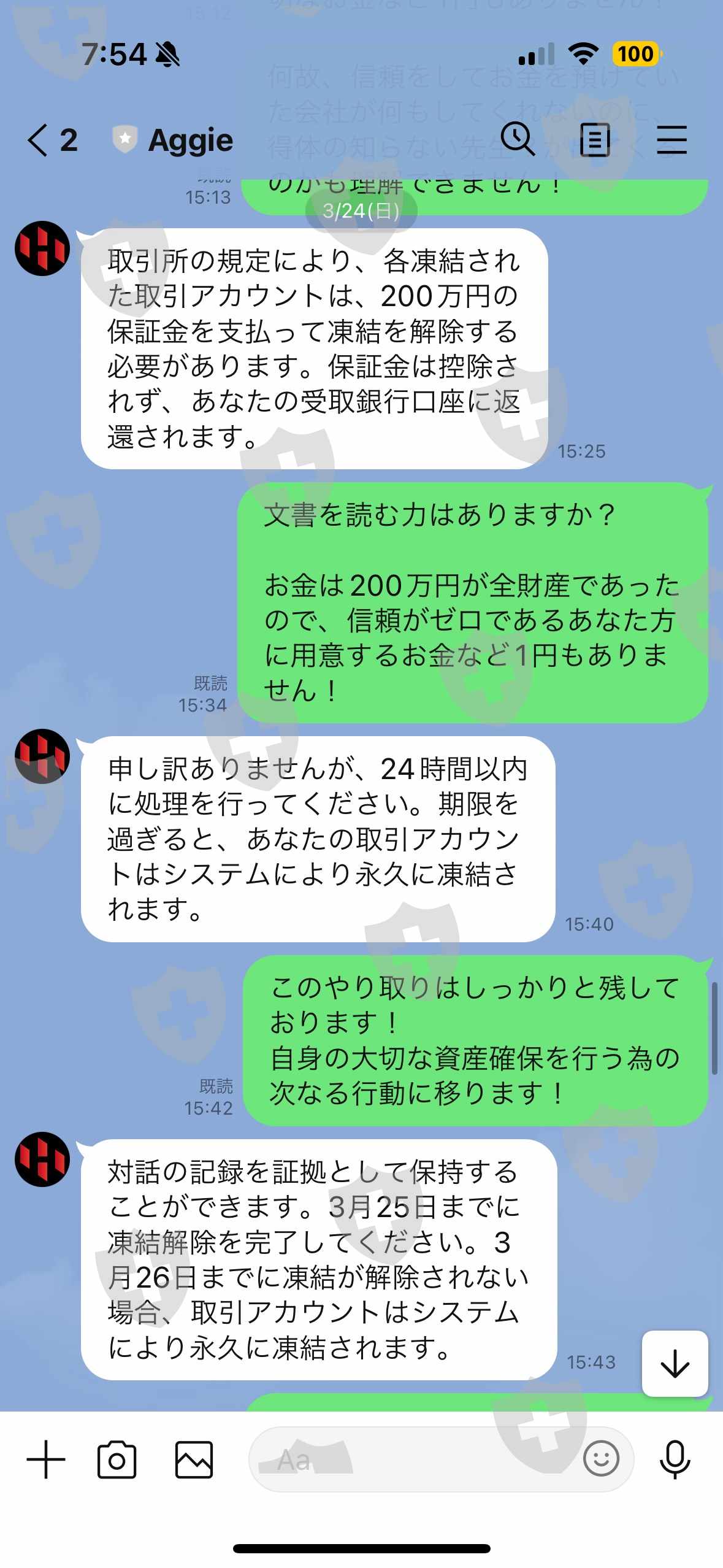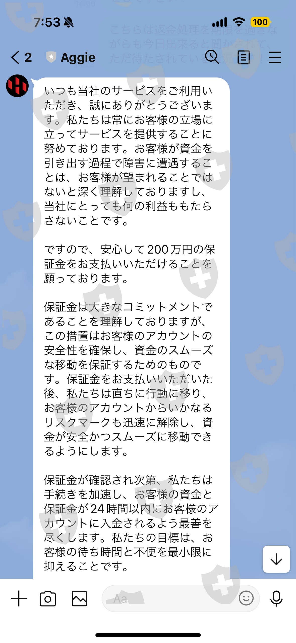 当我处理提款时,即使过了承诺的48小时,钱也没有存入,所以我联系了支持中心。当我检查时,由于处理延迟,我不得不再等一天,钱却没有存入。当我们再次询问时,确认了未经授权的访问,因此该账户被冻结以保存资金。我被要求支付200万日元作为解除冻结的保证金,没有白痴会把这笔钱付给不遵守承诺的人!我赶紧验证身份并要求提现,但遭到无视。我从主页发送了一封询问电子邮件,但根本没有收到。最终我无法登录,甚至失去了联系。损失金额为220万日元。