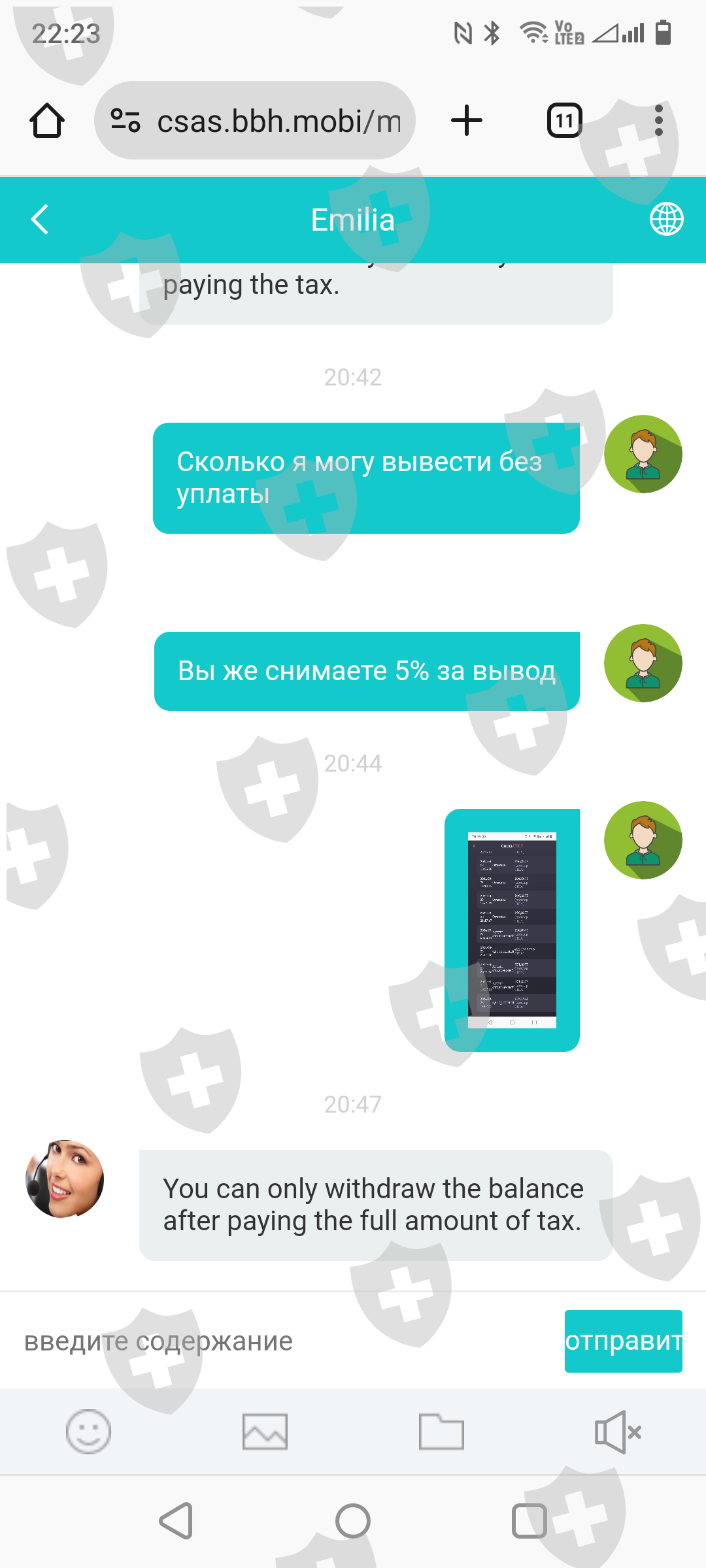 中国女孩,遇见并提供这种交流 BBH,作为投资。有几次他们允许我提款,然后就无法提款了,他们要求我支付10%的提款税。小心,他们是勒索者和骗子!