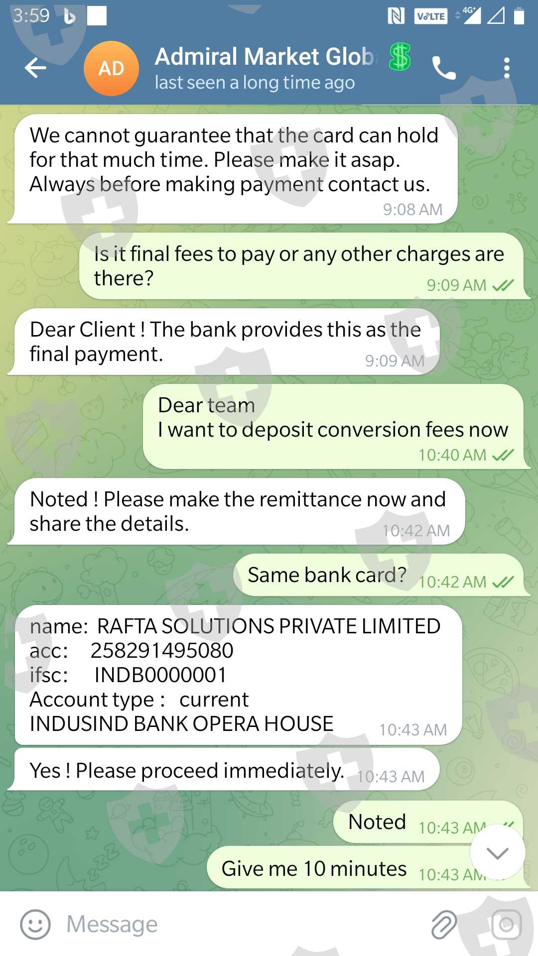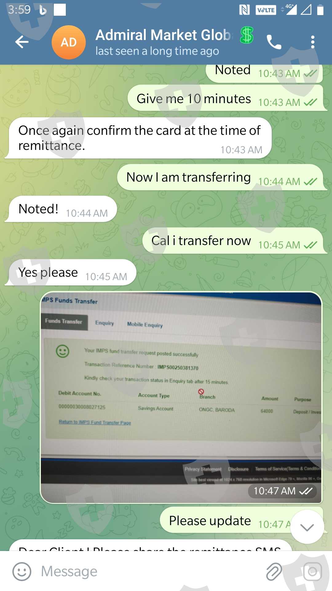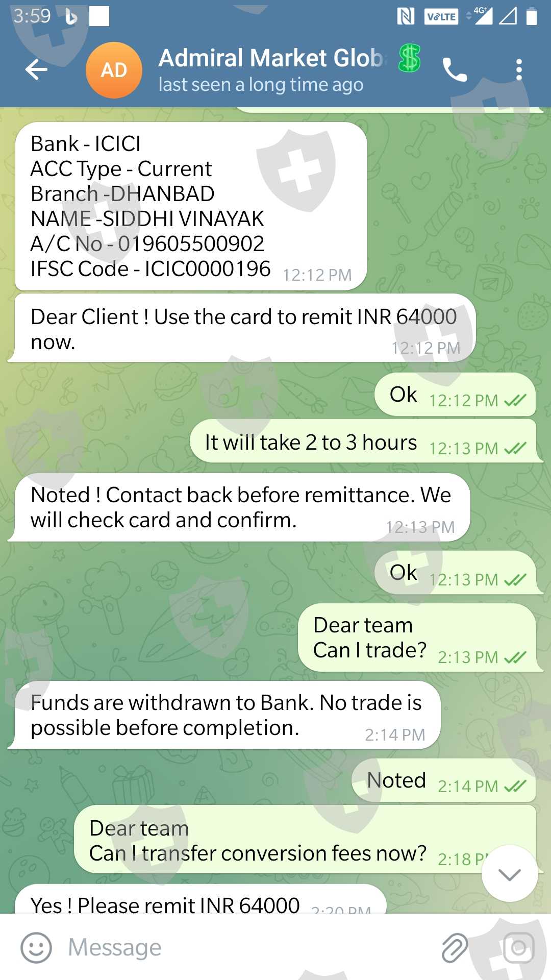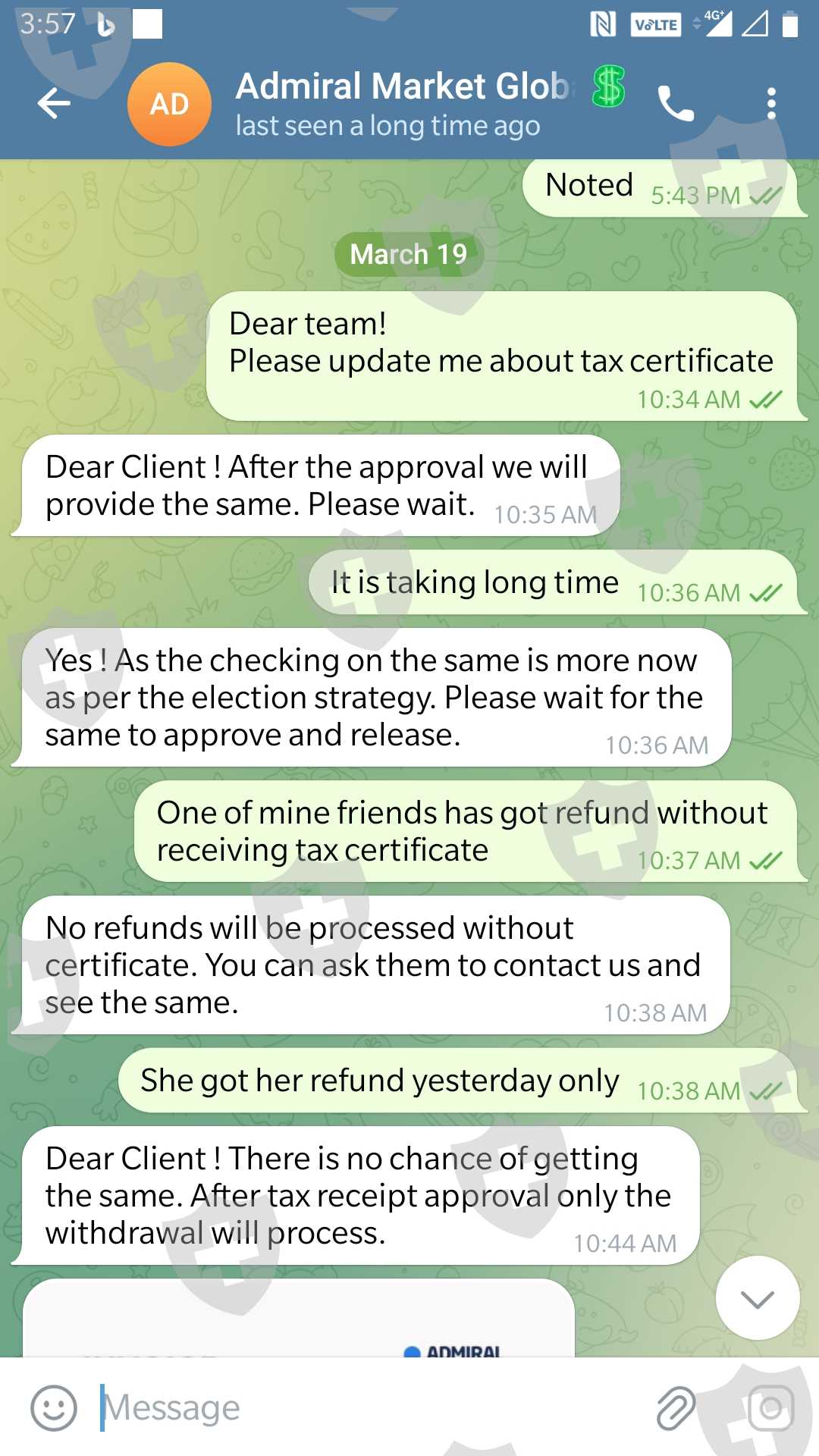 I have done trading with Admiral Markets Global ltd.My wallet balance is $ 10696 as on date.When I was applied for withdrawal of $ 8000,the platform asked me to deposit 30% tax on total profit.I deposited tax . After that they asked to deposit conversion fees10% of withdrawal amount.Afer paying all dues the platform is not refund my withdrawal since 20 days.