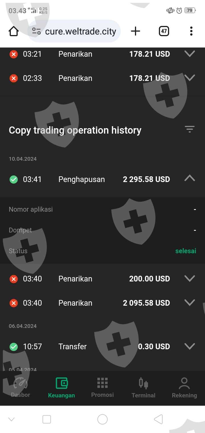 获得开斋节礼物 WELTRADE感谢上帝,我仍然可以在任何我喜欢的经纪商进行交易,感谢您的决定 WELTRADE你教会了我,在选择2000手返利经纪商时应该更加小心,2000美元提款被取消,iPhone没有付款,我的iPhone被取消,这样的事件可能发生在任何人身上,任何时候,所有色调经纪商都不能虽然有争议,但我欣然接受这个决定,我希望它能奏效。这对我自己和其他交易者来说都是一个教训。不要把你的鸡蛋放在一个篮子里。如果它们都破裂了,不要把你的资金放在一个经纪人身上。在许多经纪商开设账户。有一天,这种情况发生在您身上,那么您在另一家经纪商中仍有资金。Wasallam,请注意,公司管理层已决定取消以下提款请求: w14257972-260324172404 w14257972-290324040341 此订单有由于违反公司条款和条件获得的利润以及高估交易额而被取消。此外,wellbox 促销活动中获得的奖品也是非法获得的。因此,2295.58美元的交易收益已从您的交易账户14257972 31.12中扣除。公司保留自行决定拒绝客户参与 welbox 促销、禁止任何客户参加促销、暂停客户参与促销、拒绝将已领取的 welbox 奖金的现金金额记入贷方或以任何其他方式的权利案件。如果发现交易操纵或违反交易条件、在同一合作伙伴或参考下进行多次注册、仅旨在满足主要条件的交易活动或要求现有客户注册新账户,则限制客户参与促销活动的方式,或者在其他情况下。在这种情况下,公司不需要提供解释。吉克