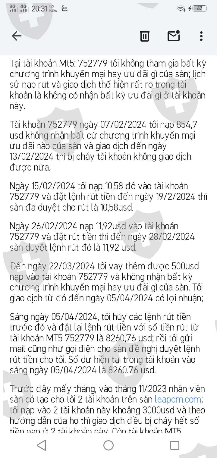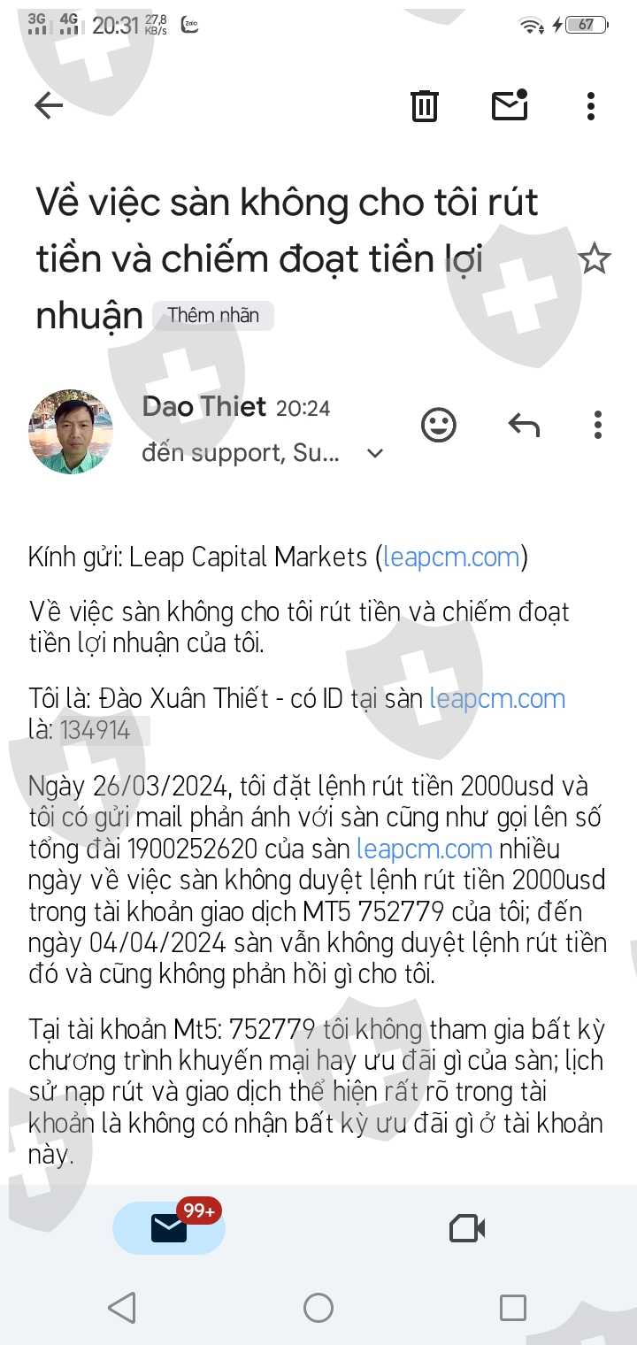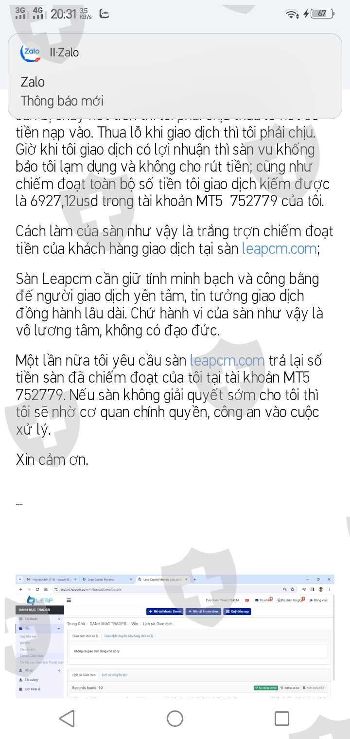 Sàn leap catital markets (leapcm.com) xử ép, vu khống, chiếm đoạt tiền của tôi là 6927,12usd