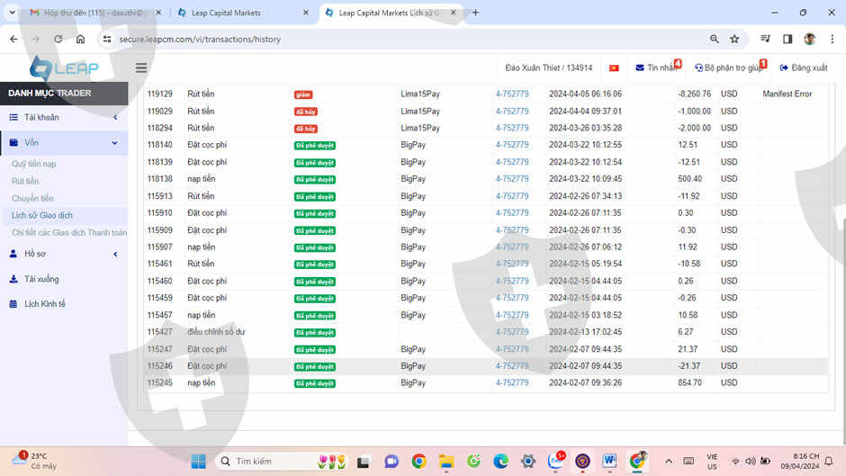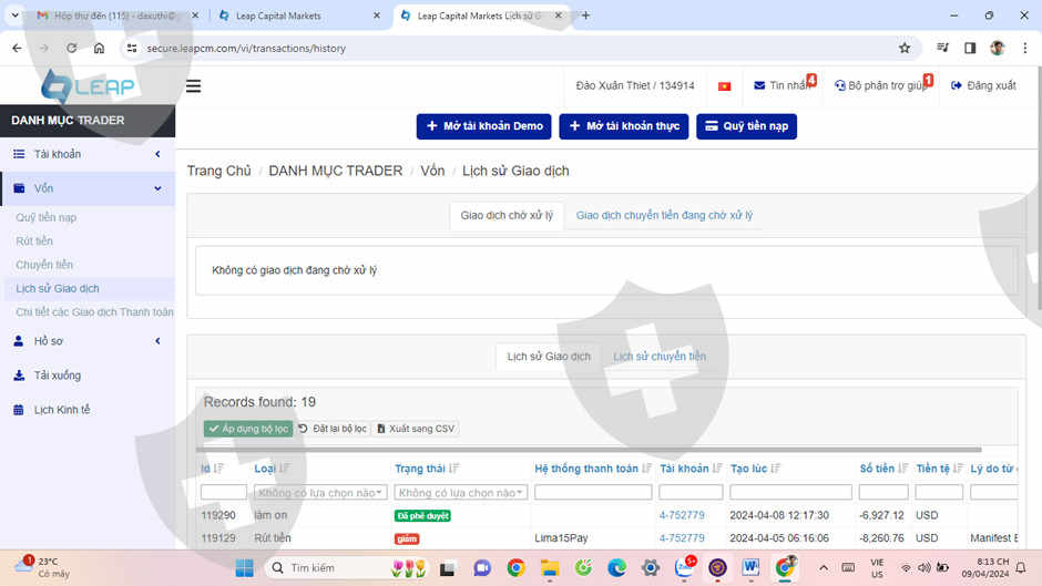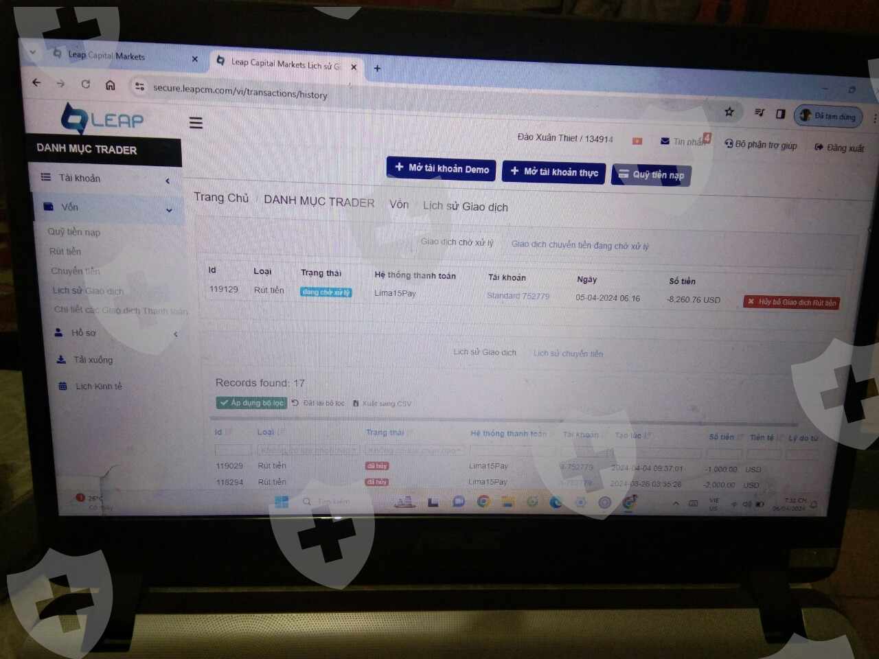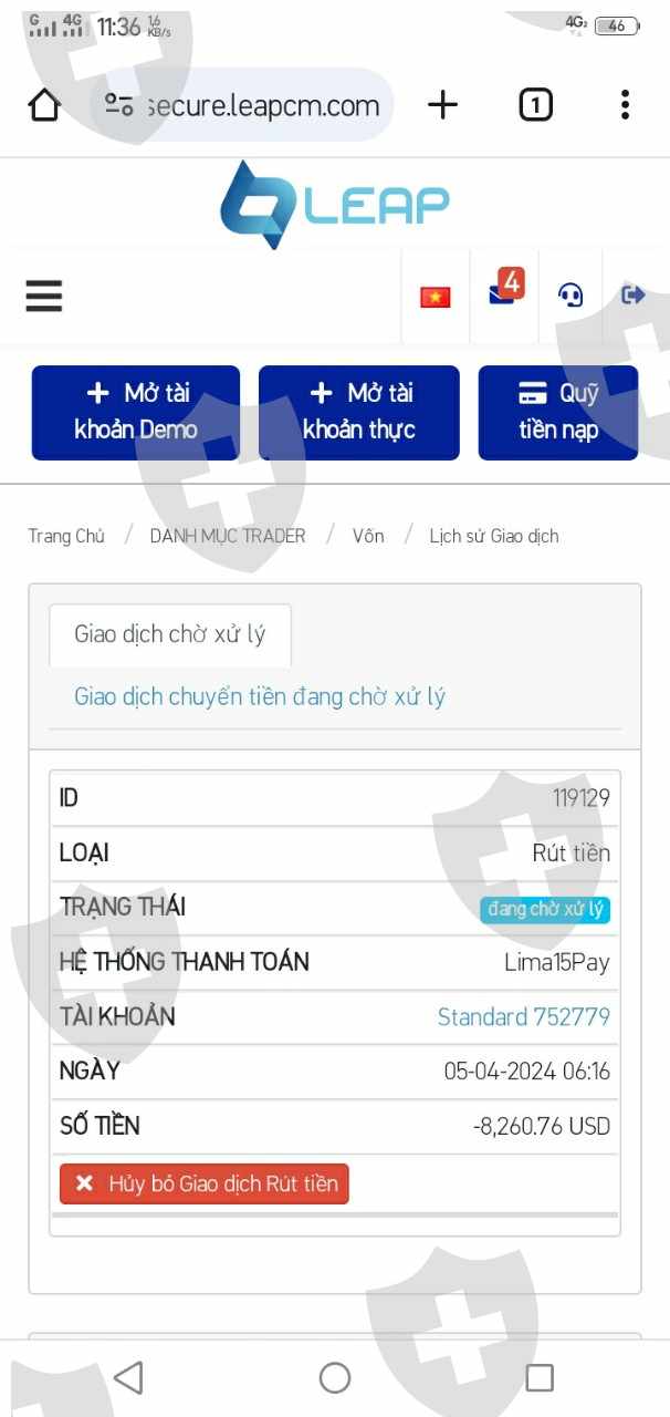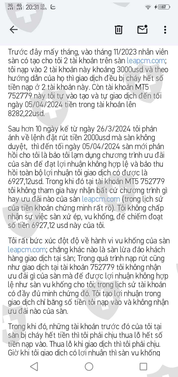 Sàn leap catital markets (leapcm.com) xử ép, vu khống, chiếm đoạt tiền của tôi là 6927,12usd