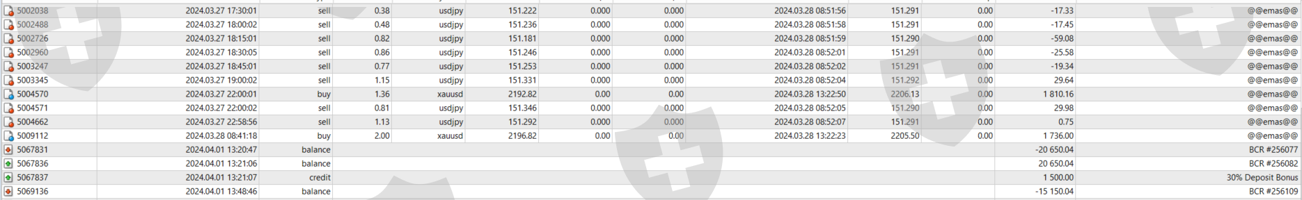 2024年3月22日-在Monaxa入金$5500。 2024年4月1日-未事先通知,从MT4扣除$15150.04。 2024年4月2日-交易所的业务发展经理给我打电话,说我盈利过多。