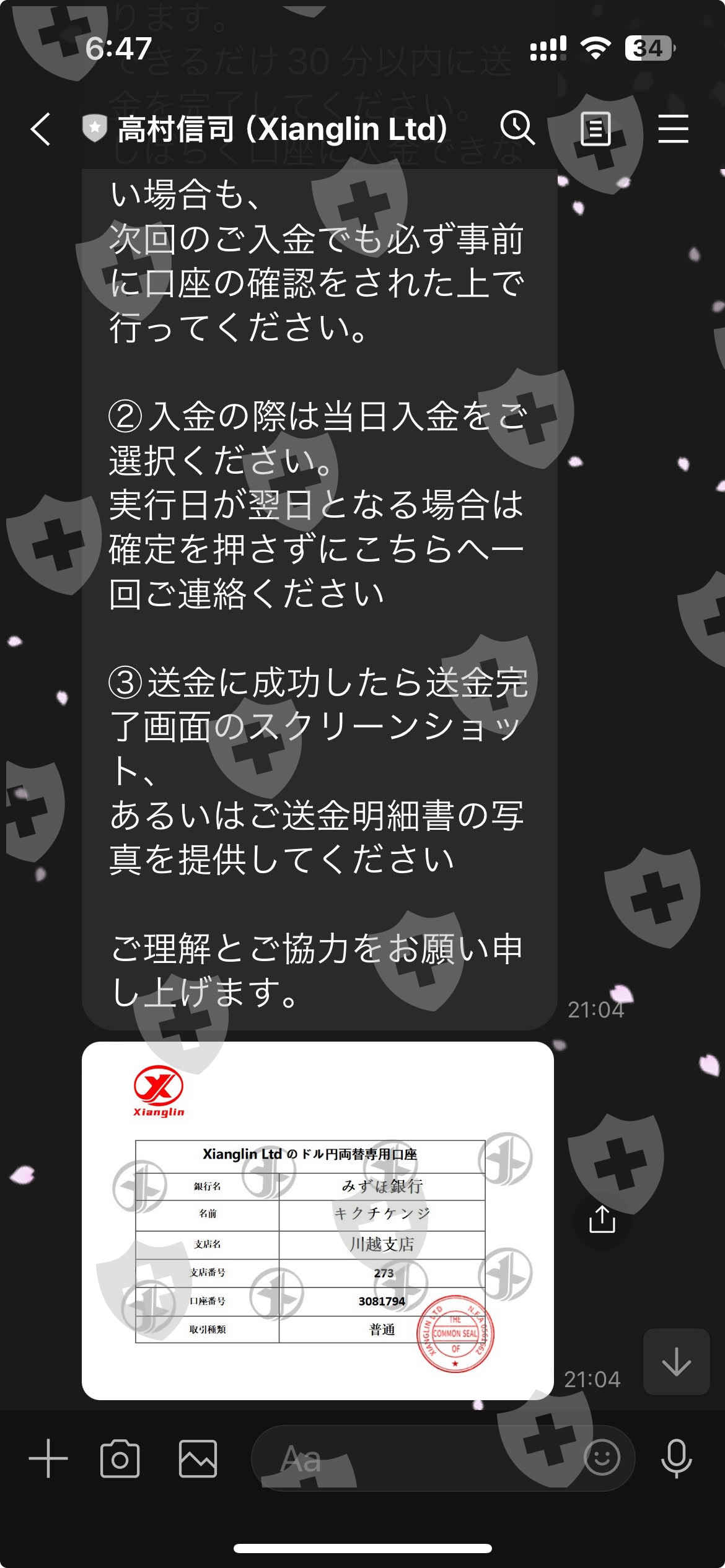 皆様へ、重要な注意喚起をお伝えします。私は最近、FX取引を装った詐欺に遭遇しました。この経験から、同じ過ちを犯さないよう他の方々に警鐘を鳴らしたいと思います。■被害の内容出金の不可能性: 「Xianglin」というプラットフォームを介して行われたFX取引において、出金が不可能な状態に陥りました。利益を確認できたとしてもそれを実際に手にすることができません。■担当者との連絡途絶: 高村信司氏を含むプラットフォームの担当者との連絡が完全に途絶えました。私からの連絡手段は一切遮断され、一方的な情報の不透明性にさらされています。■疑わしいLINEグループ: またすがのひろふみ、東坂隆彦、杉山美波からなるLINEグループも非常に疑わしいと感じています。このグループは、詐欺行為における誘導や情報操作に利用されている可能性があります。■原油プロジェクトの疑念: Xianglinを通じて提案される原油プロジェクトもまた、信頼性に欠けるものと判断しています。この種のプロジェクトは高いリターンを謳うものの、実際は投資者を罠にはめるための仕組みであることが多いです。■呼びかけこの通知は、私のように無実の投資家が詐欺の犠牲になることを防ぐためのものです。もしこれらの名前やプロジェクトに馴染みがある方がいらっしゃる場合は、最大限の注意を払ってください。皆様の安全と資産を守るために、このメッセージを広めていただければ幸いです。投資は慎重に、そして情報を十分に確認した上で行ってください。