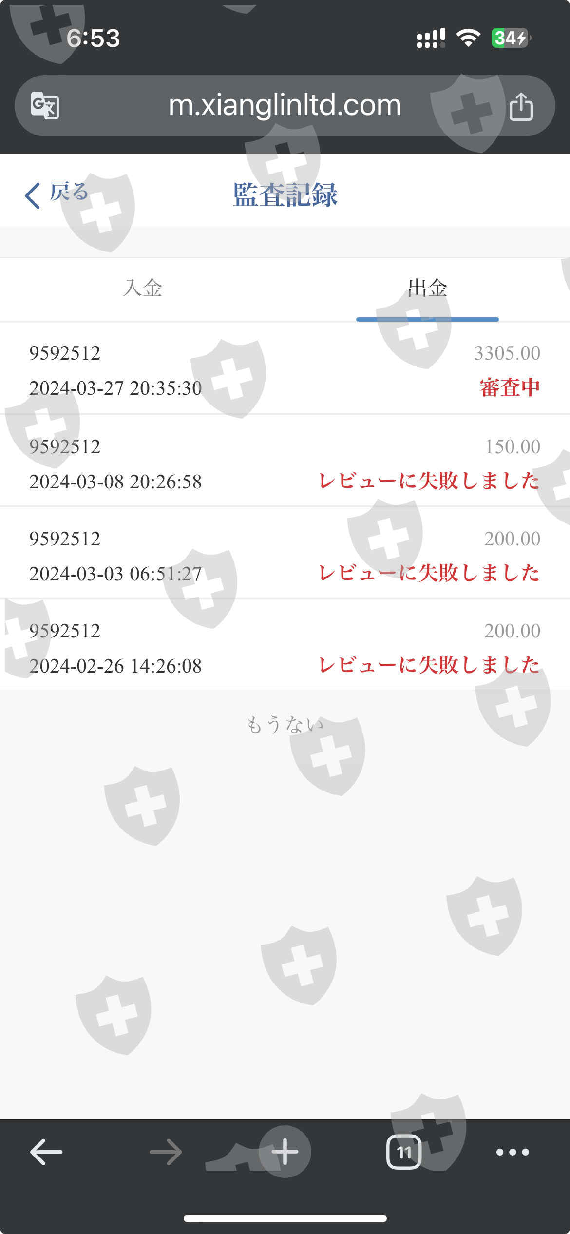 Xianglinは出金出来ませんでした