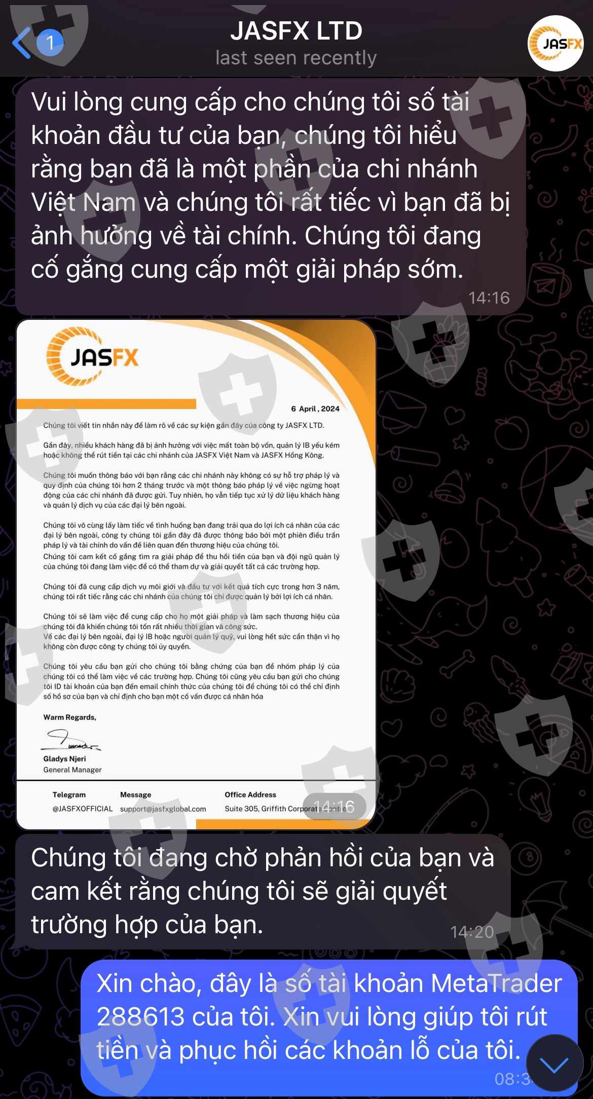 JASFX hứa sẽ giúp đỡ, cố vấn IB đã lừa dối tôi !!