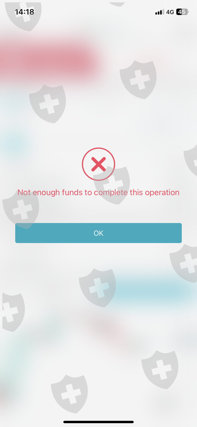 كذلك الحساب به رصيد وظهرت رسالة ان لا يوجد رصيد في الحساب