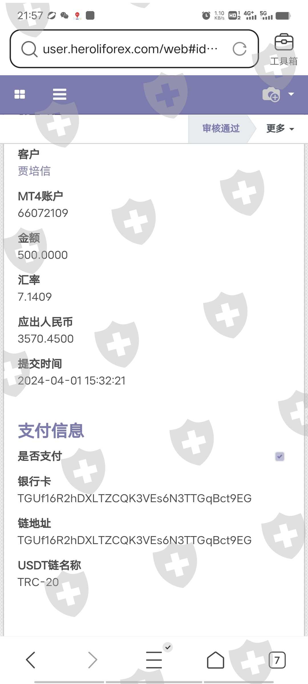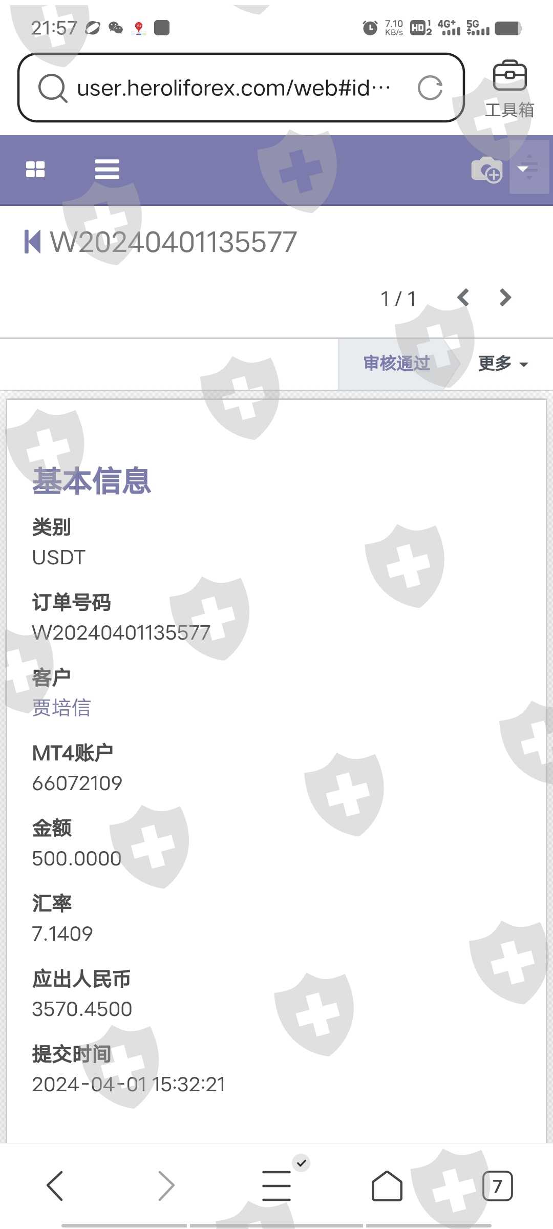 出金金额和信息按提示操作然后提交,过两到三天显示审核通过,但是一直到不了账