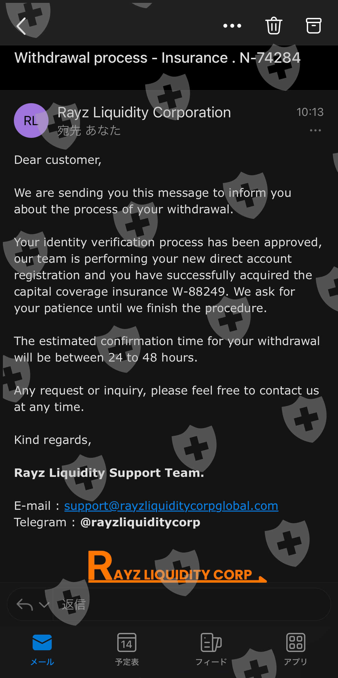 Rayz 的总经理发言并解释了日本分公司发生的情况。我们的日本分公司不再受支持或授权!中村顾问一直在欺骗我。 Rayz承诺帮助并解决其日本分公司受影响的客户。我遵守了保险和身份证明要求。支持团队向我保证,最迟会在 48 小时内收到提款确认信息。我确信这一点。如果我收不到钱,我就揭发他们! -A。