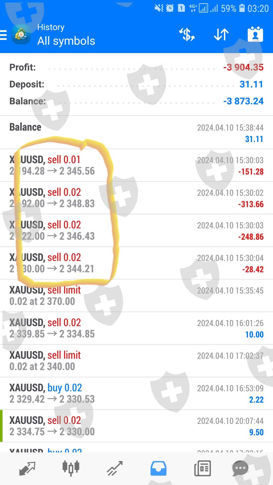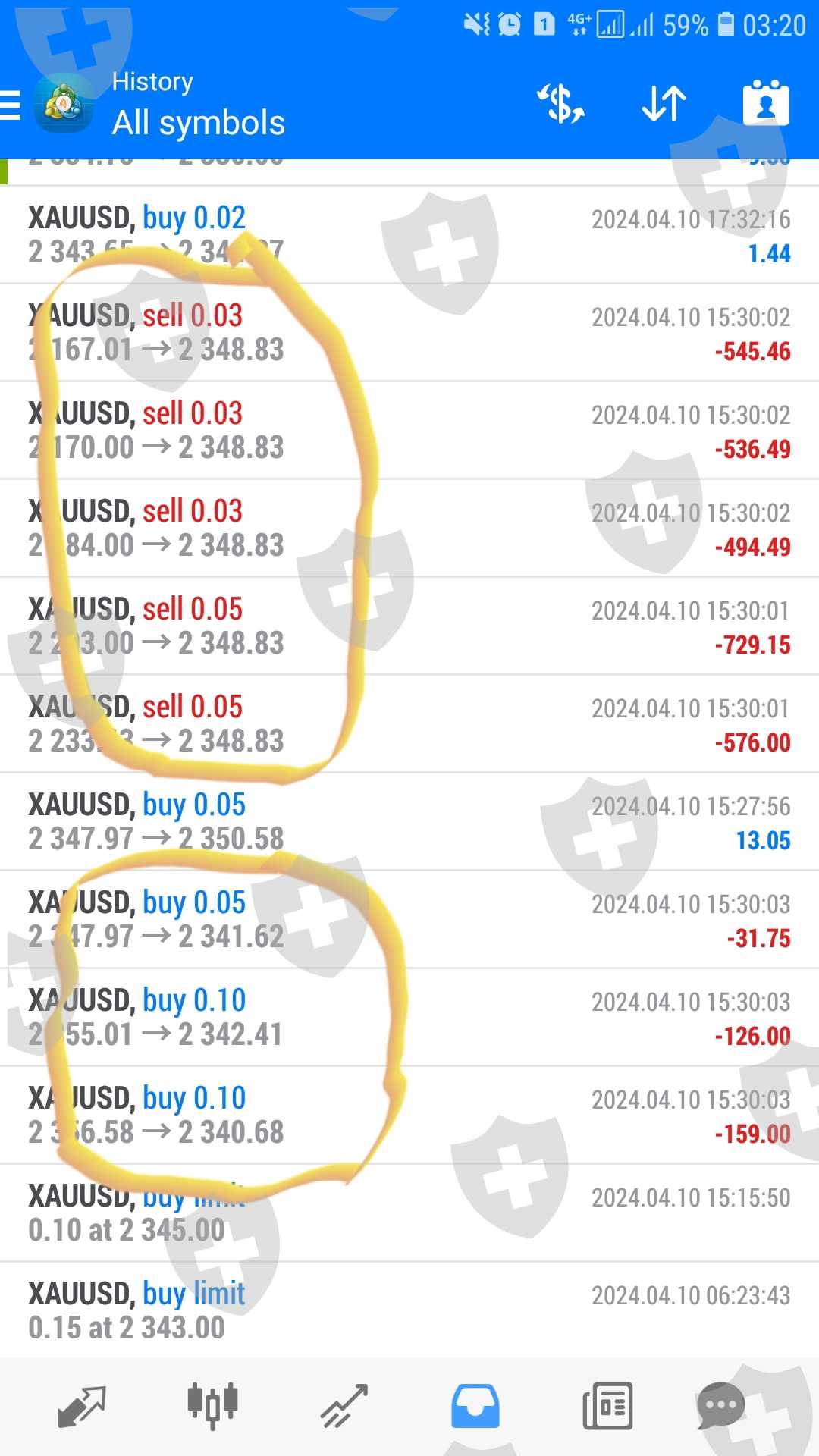 Tanggal 10 April 2024 jam 19.30 wib atau 15.30 waktu eropa, saya ada OP Gold Buy 0,25 dan Sell 0,26