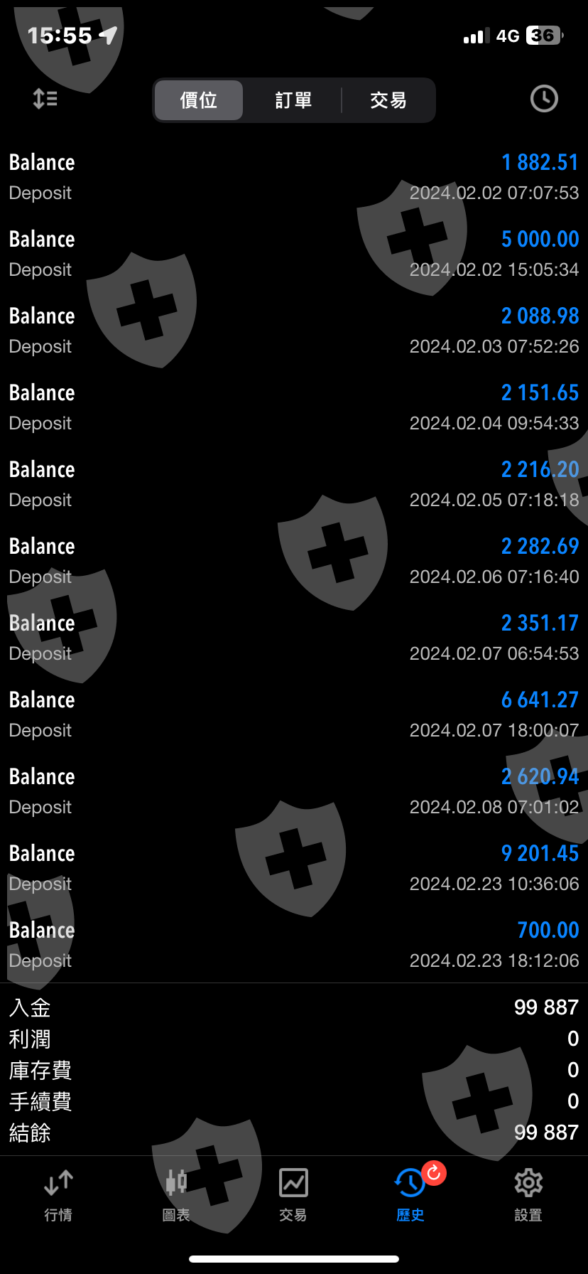 中間他有幫我入金15700美元,第一個交易商AdenMarkets的時候有做3次行情,也有提領過。