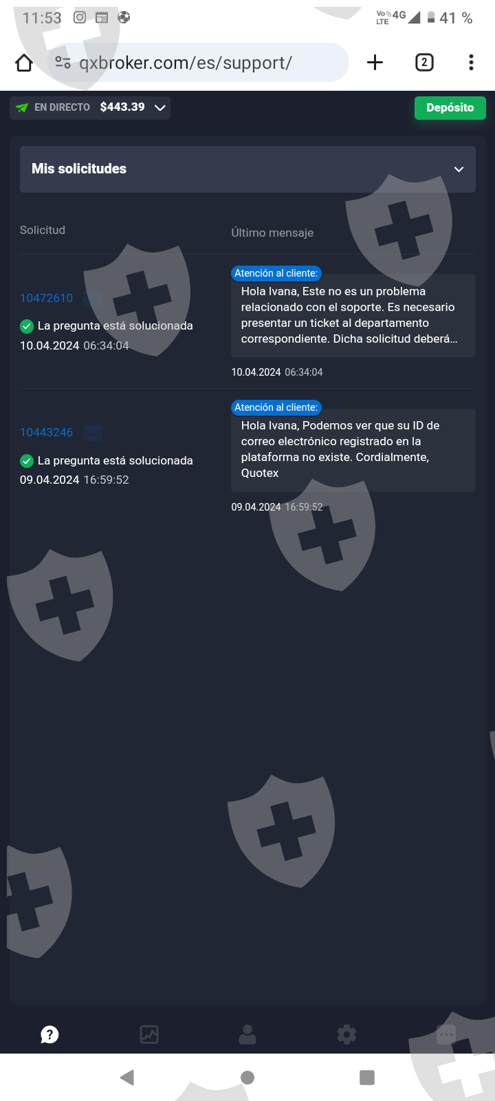 我的情况是这样的:我尝试提取余额,但由于我的账户未确认而无法提取,我请求支持 QUOTEX向我发送确认电子邮件时,他回复说我的电子邮件地址不存在,我再次要求编辑我的个人资料以更改电子邮件地址,以便他们可以向我发送确认电子邮件,并且我可以提取余额。直到今天我还没有得到回复。我发送了支持响应的屏幕截图以及我放入帐户个人资料中的电子邮件收件箱的主屏幕,确认所提供的地址确实存在。我希望您查看个人资料以更改电子邮件或向我发送新的确认电子邮件。谢谢。
