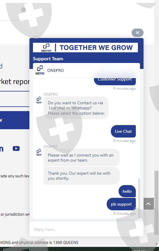 2023 年 12 月 19 日,我将 3,000 美元存入我的交易账户,经过 1 个月的盈利交易后,我于 2024 年 1 月 29 日首次提款 1,000 美元,但我的银行账户没有收到这笔钱。虽然从我的交易账户中扣除并且通知成功,但我没有收到。地面 OnePro故意编造虚假历史来侵占我的钱财,经过多次联系试图拖延时间后就消失了。该交易是一个明目张胆的骗局,3000美元的资金尚未提取。实时聊天无法使用,也没有支持。我想要回我的 3000 美元