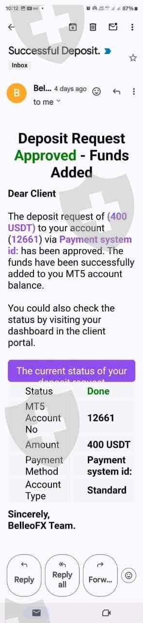 主题:对于Belleofx诈骗交易商的评论 - 我的 Mt5 账户号是12661