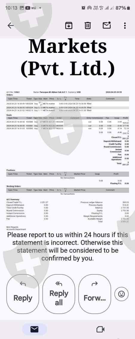 尊敬的先生/女士, 我写信是为了评价 Belleofx 诈骗交易商提供的服务。 我的名字是法鲁克·阿里·阿巴西,在 Belleofx 开设了一个账户,MT5账号为12661。我的账户发生了一件事,让我意识到Belleofx 是一个欺诈交易商,希望这能引起您的注意。4月22日,我在账户入金504美元,并卖出了31股美股META Facebook。我盈利了 2251 .96美元,当我要求提取利润时,Belleofx 诈骗公司取消了我的所有利润,并通过电子邮件告诉我,我的交易是欺诈交易。 我不明白基于投机或新闻的交易如何被视为欺诈。我盈利了,但想出金的时候他们不肯给我。如果我赚钱,他们拒绝出金,但如果我在交易中赔钱,他们就不在意。他们还说只退还我的本金。我想提醒所有散户,在Belleofx 诈骗公司交易时要小心谨慎。他们的独立服务器似乎是不连着交易所的。提醒所有读者提防这个诈骗交易商。Belleofx的首席执行官,你们交易商在欺骗我,请退还我的利润,我没有做错任何事,只是在你们提供的美股上进行正常的交易。如果我用同样的策略亏损了,公司会赔偿我的损失吗?所有散户交易者尽快从 Belleofx 诈骗公司撤资,因为即使您盈利,您最终也会损失血汗钱。非常感谢您帮助传播有关此事件的消息,防止更多受害者在该诈骗交易商处亏钱。我已在这封电子邮件中附上了屏幕截图、相关证据、视频。本周我将与我的律师见面,采取行动。