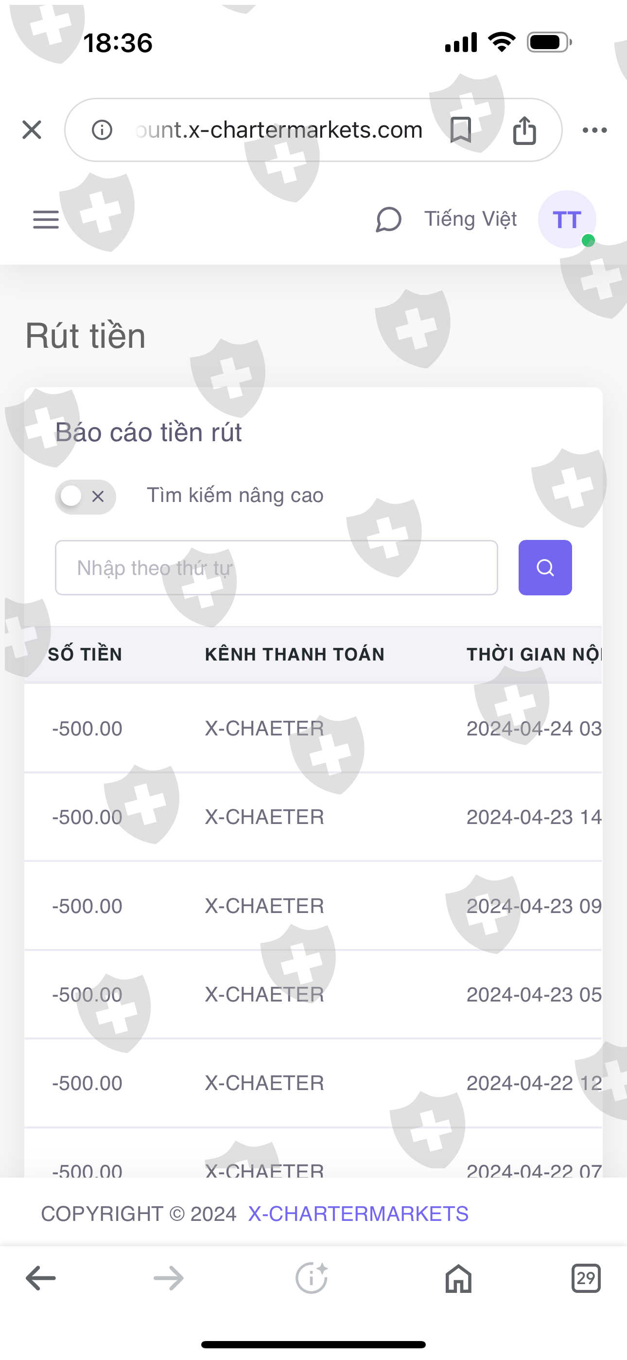 你好 X Charter!请再帮我检查一下。目前,我无法将钱提取到我的账户中。自从我下达提款订单以来已经过去了10天。期待来自 x charter 交易所的回复。谢谢!