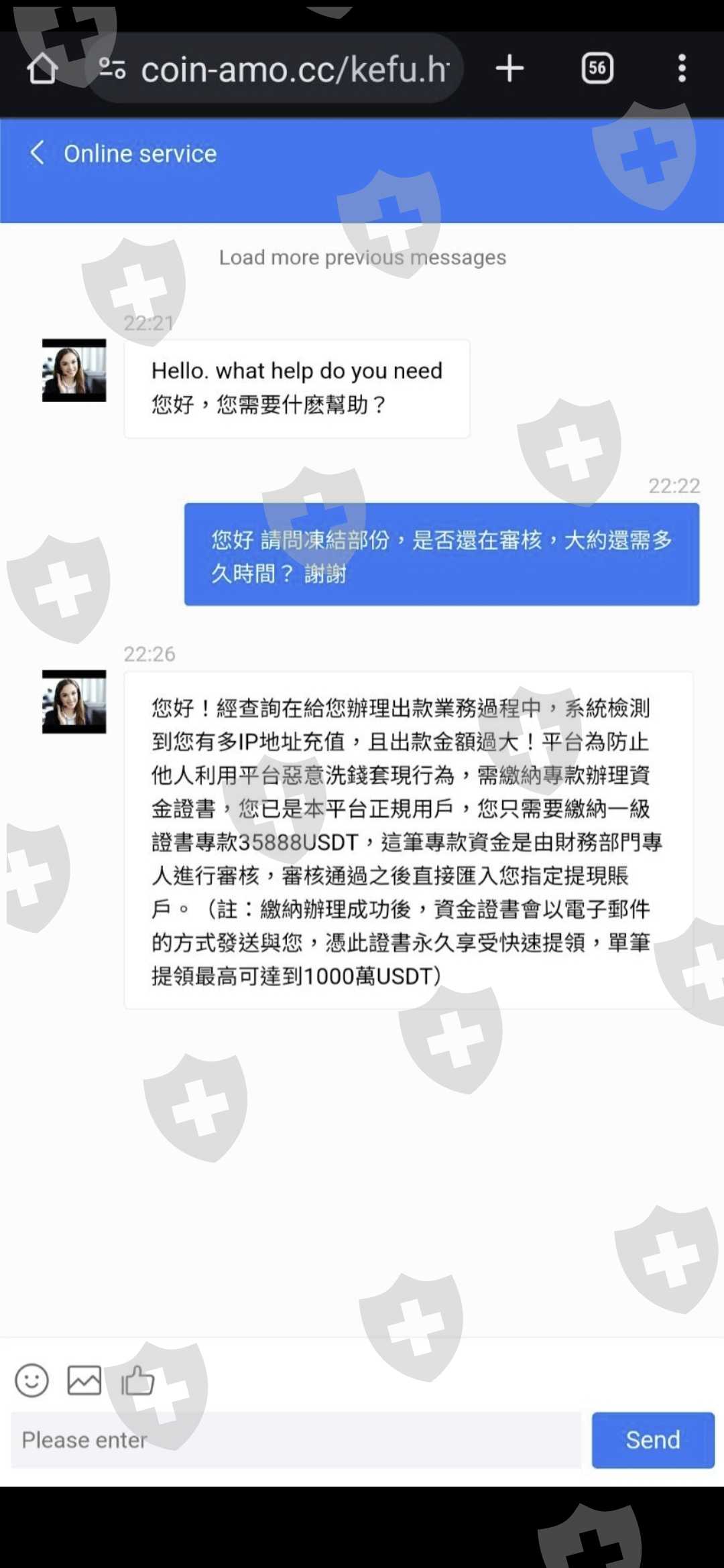 為領取新人福利(當時未截圖)加上投資獲利後,要求出金,客服稱金額過大,需繳交證書專款,繳交後,又稱需繳交稅金