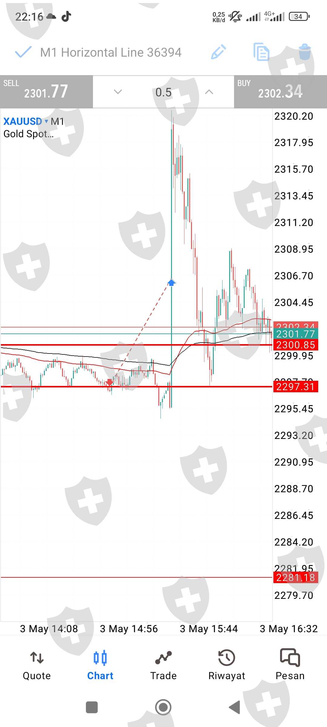 when I was trading on xau/usd there was news on Friday 3 May 19.30 I used Stop Loss at point 2300.88