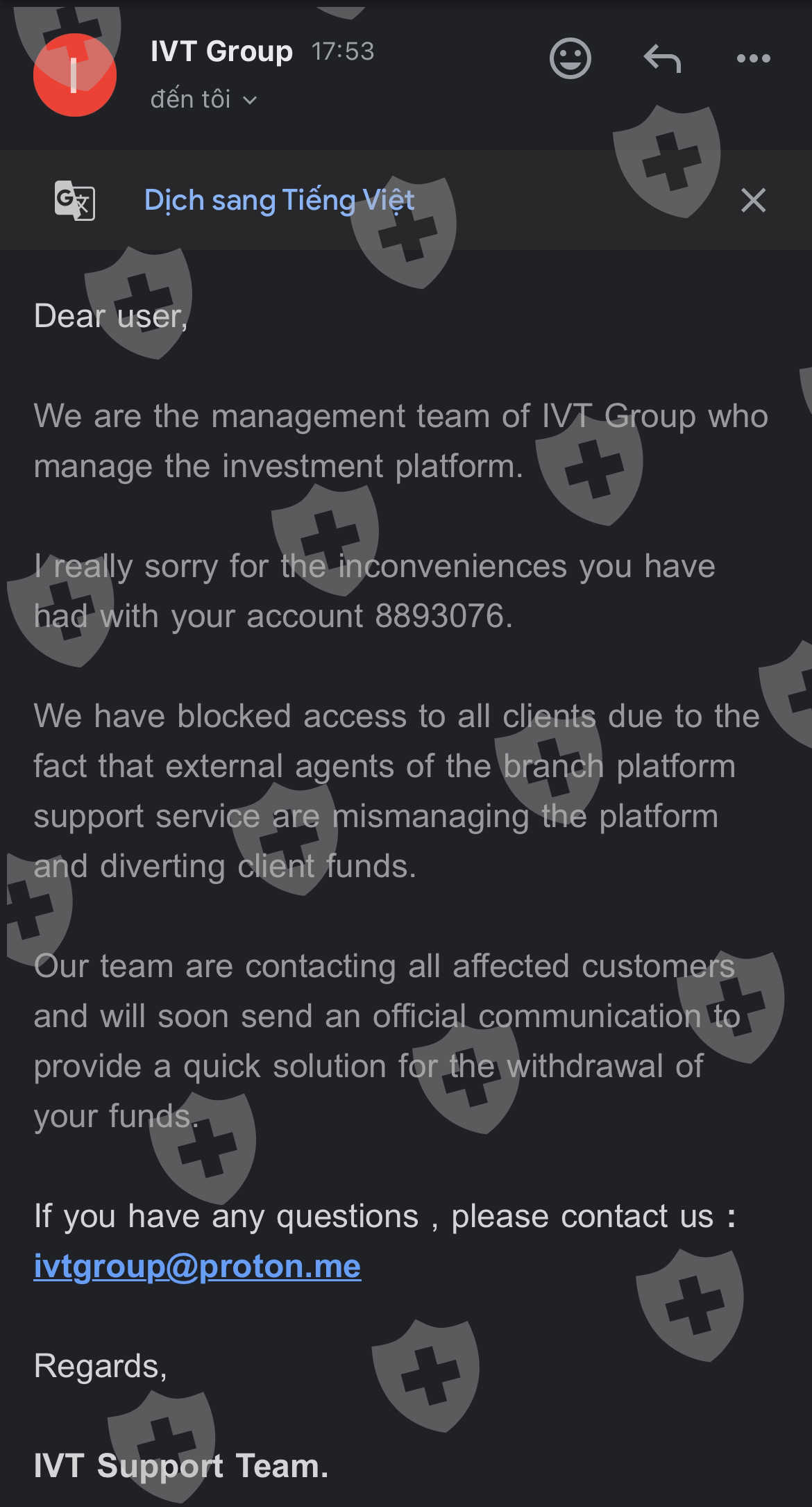 Tôi đã trả thuế để rút tiền và tài khoản của tôi đã bị khóa mà tôi cần phải làm. Hôm nay tôi đã nhận được email hỗ trợ và tôi hy vọng có thể rút tiền của mình. 16000 USD tiền thuế + 20.000 USD tiền gửi và 62.000 USD lợi nhuận. Tôi sẽ vạch trần họ nếu họ không trả tiền cho tôi