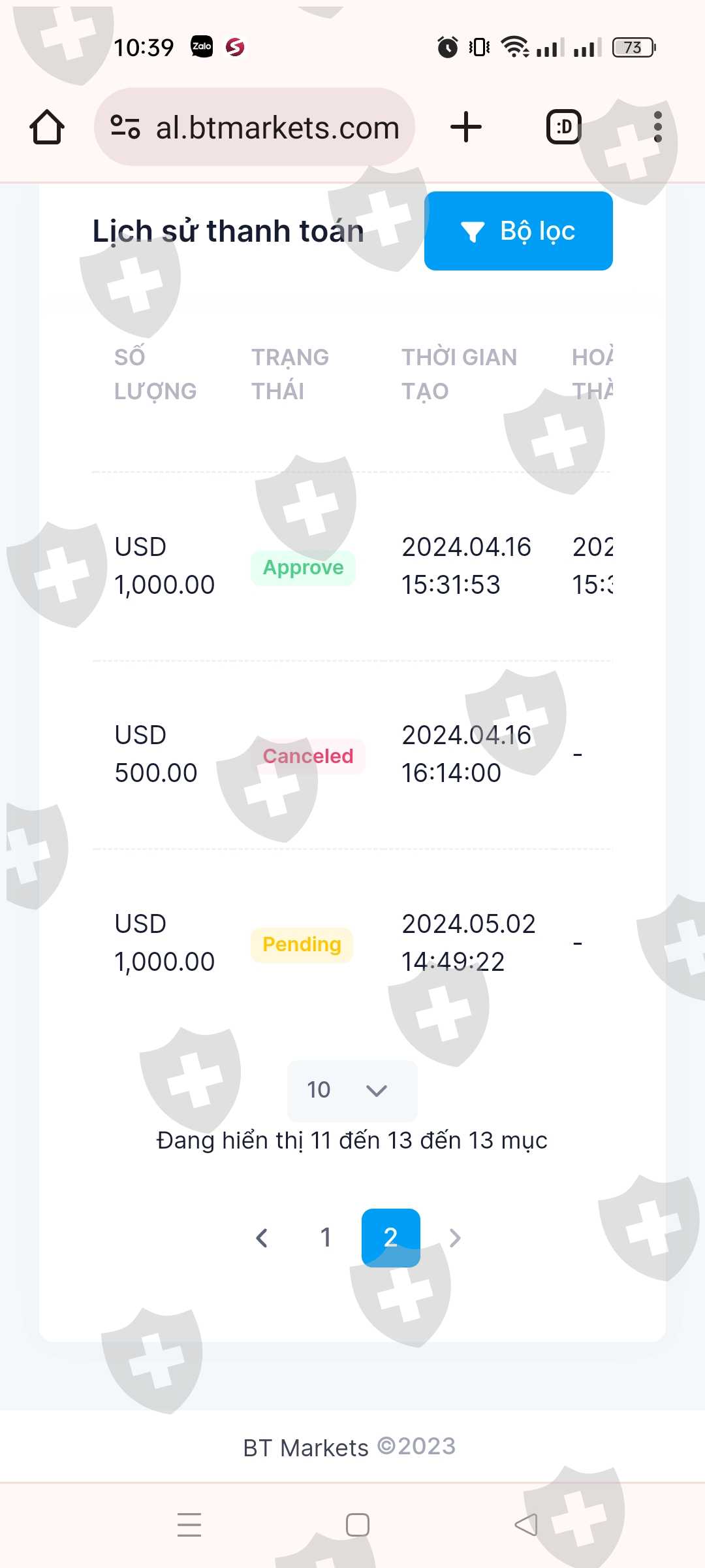 Tôi có tài khoản tại BT MARKET, nạp tiền vào giao dịch. Giờ muốn rút tiền ra, thì lệnh rút bị treo từ ngày mùng 2/5/2024. Hiện tại lệnh vẫn bị treo, ko hoàn thành được lệnh rút