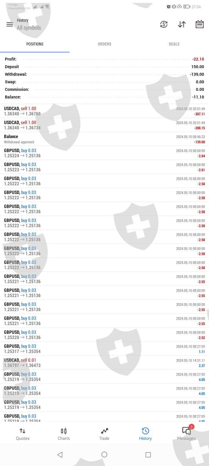 Today marks one of my baddest days. To cut the story short. I funded $150 managed to withdraw $139 after making $284. From there i traded untill the account was $584.14... I requested a withdrawal. It took hours and hours. No response no mail no notification or anything. When i thought okay maybe fhey will respond i went back to MT5 to realise that there was 2 trade which took place during the day and i was not trading during that tims because i was waiting for withdrawal. To my surprise the trades are not even with the candle sticks it was just edited and all my balance was erased.