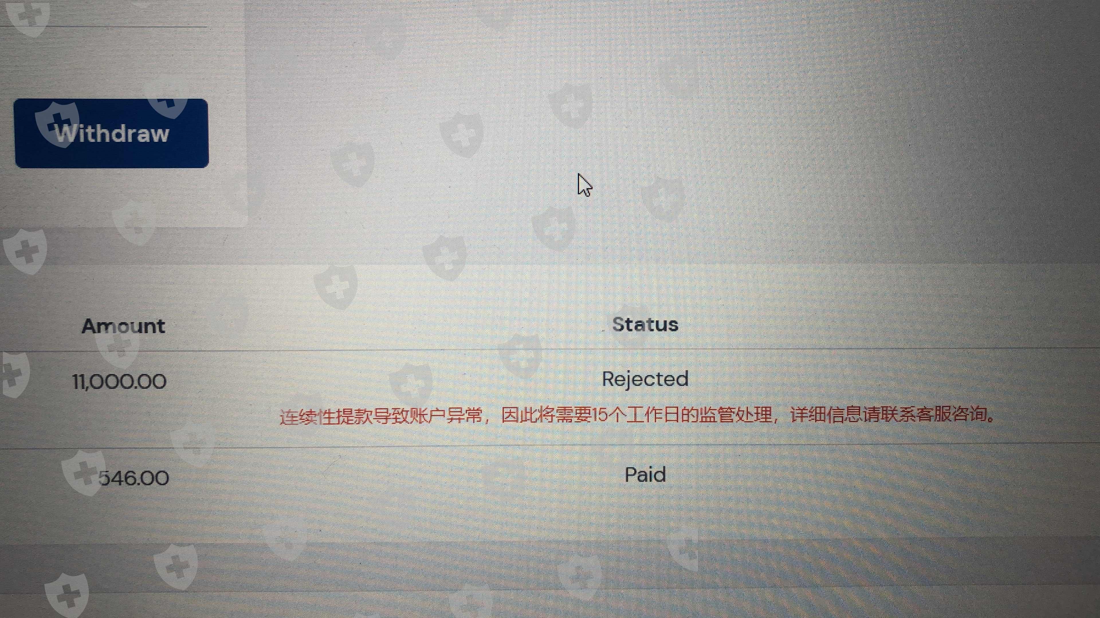 该平台提供两种付款方式:银行转账,但只能转给自然人而不是公司,或者使用以太币、USDT等加密货币。当您申请提款时,对于小额金额,他们会在30分钟内无问题地支付给您。当您进行更高金额的提款交易时,他们会以系统错误为借口阻止提款,并将您的提款冻结15天。最终,这个平台的目的是什么?也许是尽可能多地将资金投入平台,然后将其全部消耗掉。到目前为止,我尝试过提取546 USDT的小额提款,一切正常。但当我提交总计11,000美元的提款请求时,他们为我阻止了提款。大家一定要小心这个平台,真的。甚至不要往里面投一分钱。我之所以这样做,是因为我被WhatsApp上的某人骗了。