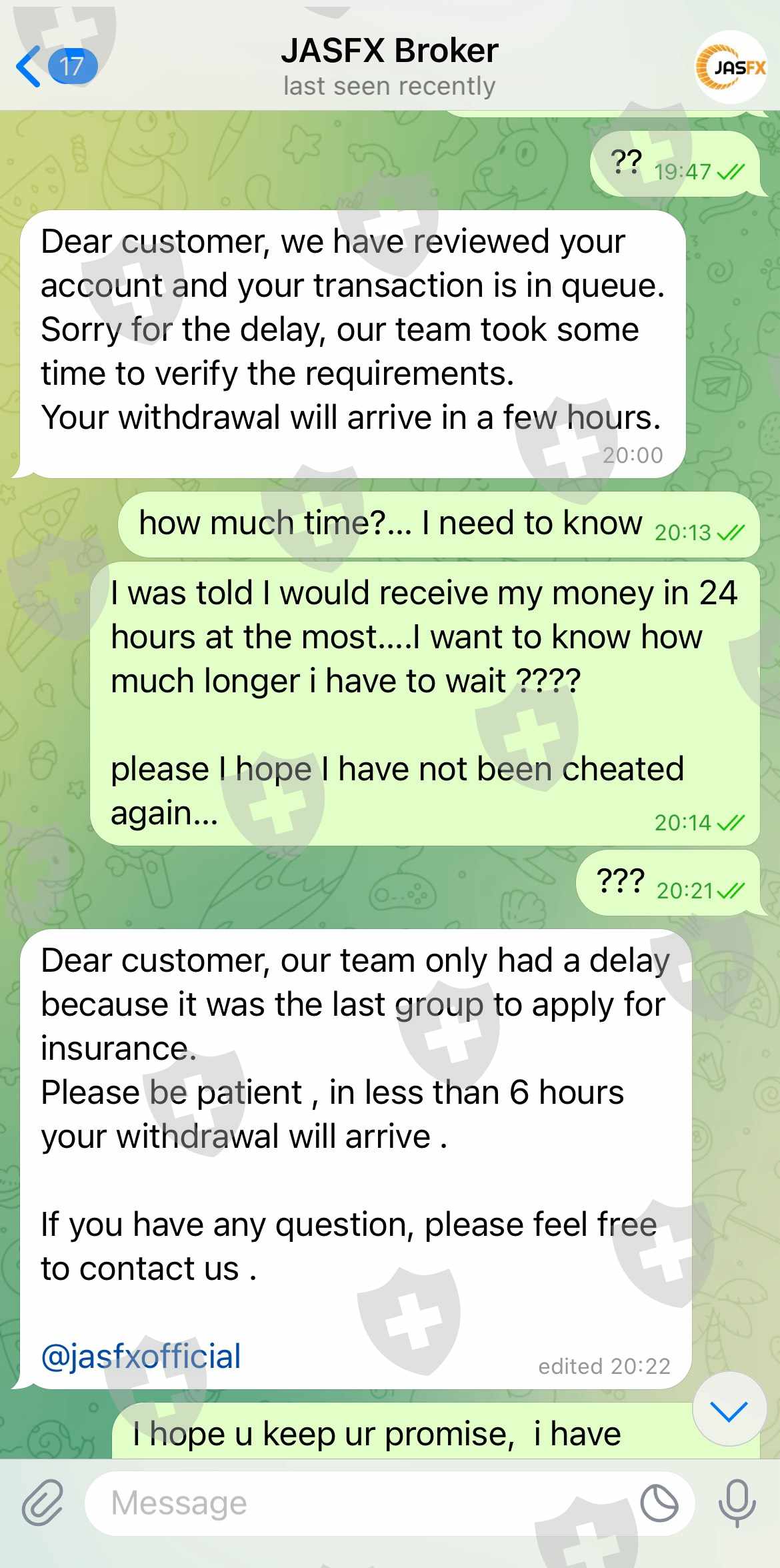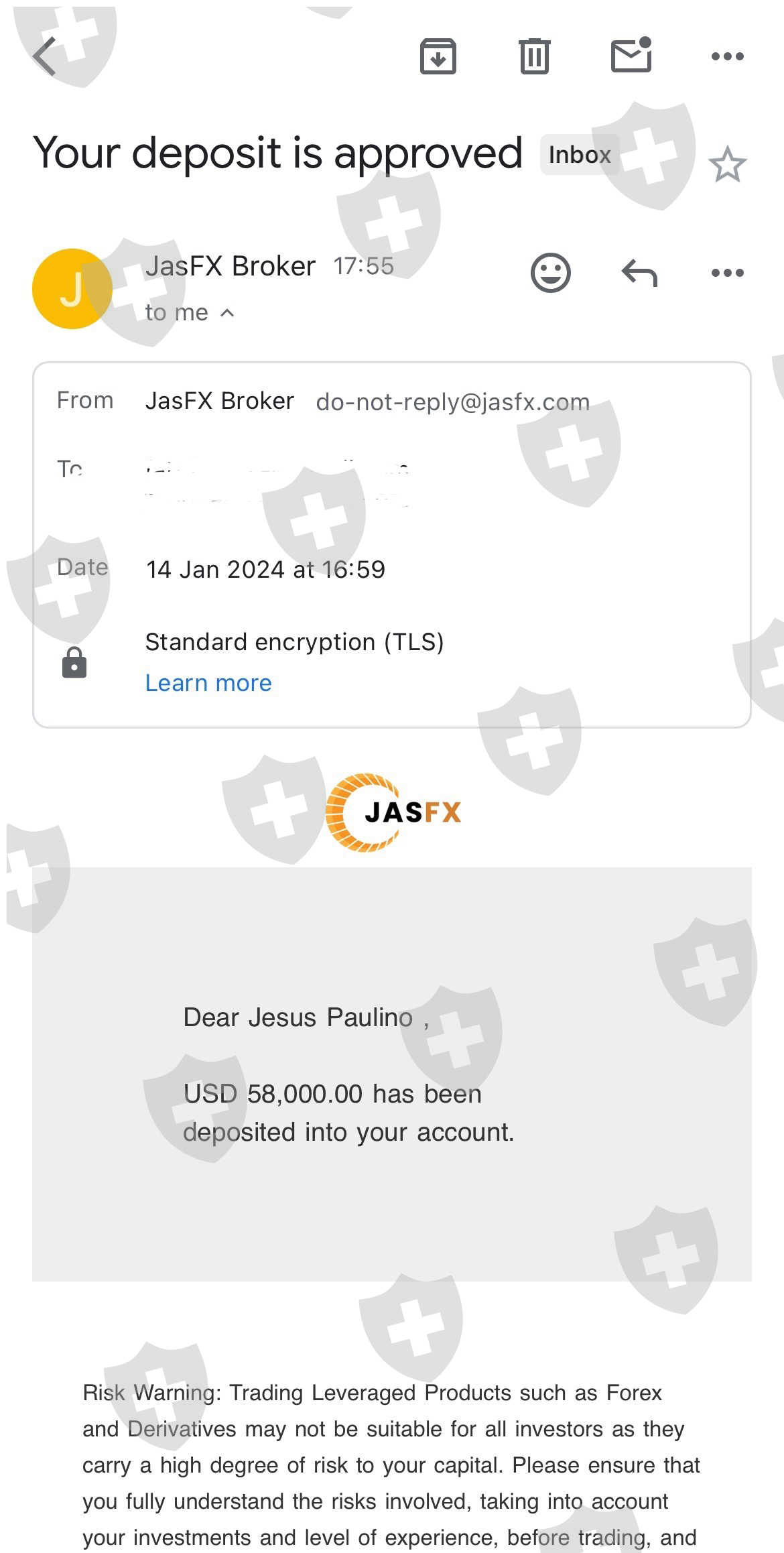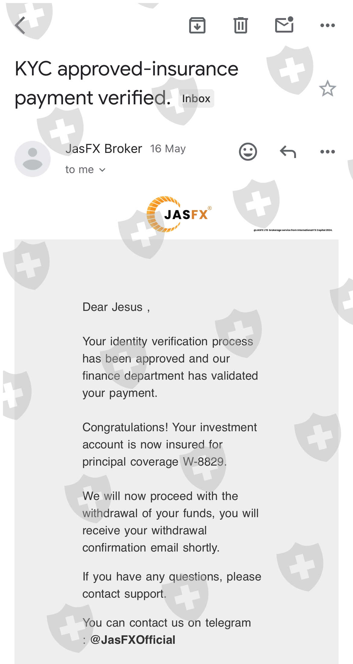 支持团队停止回复,我收到了JasFX总部的一封电子邮件。