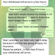 They said I would receive my money in less than 24 hours and it has been two days and my withdrawal has not arrived!!! asked support and they said to wait about 6 hours.