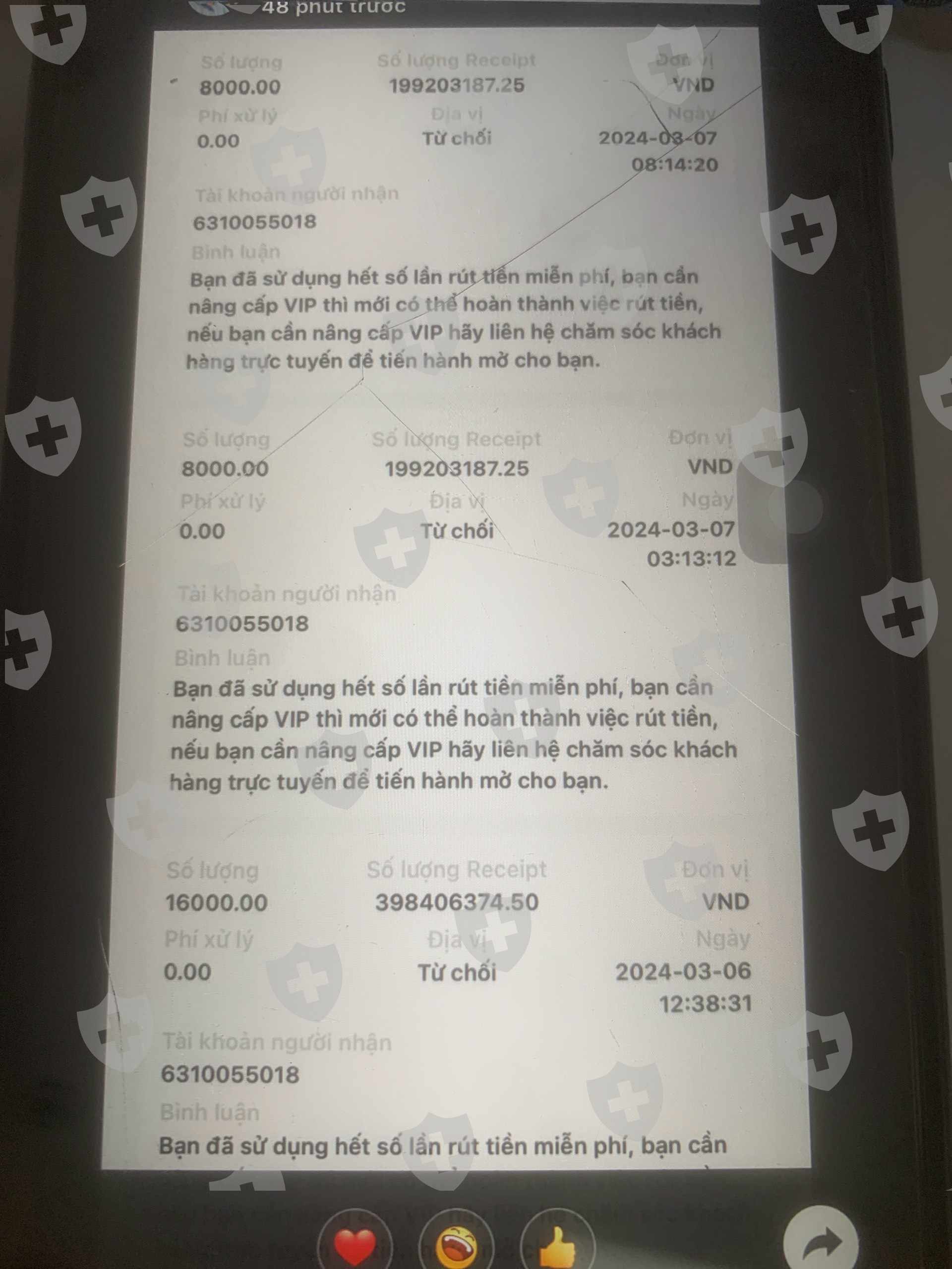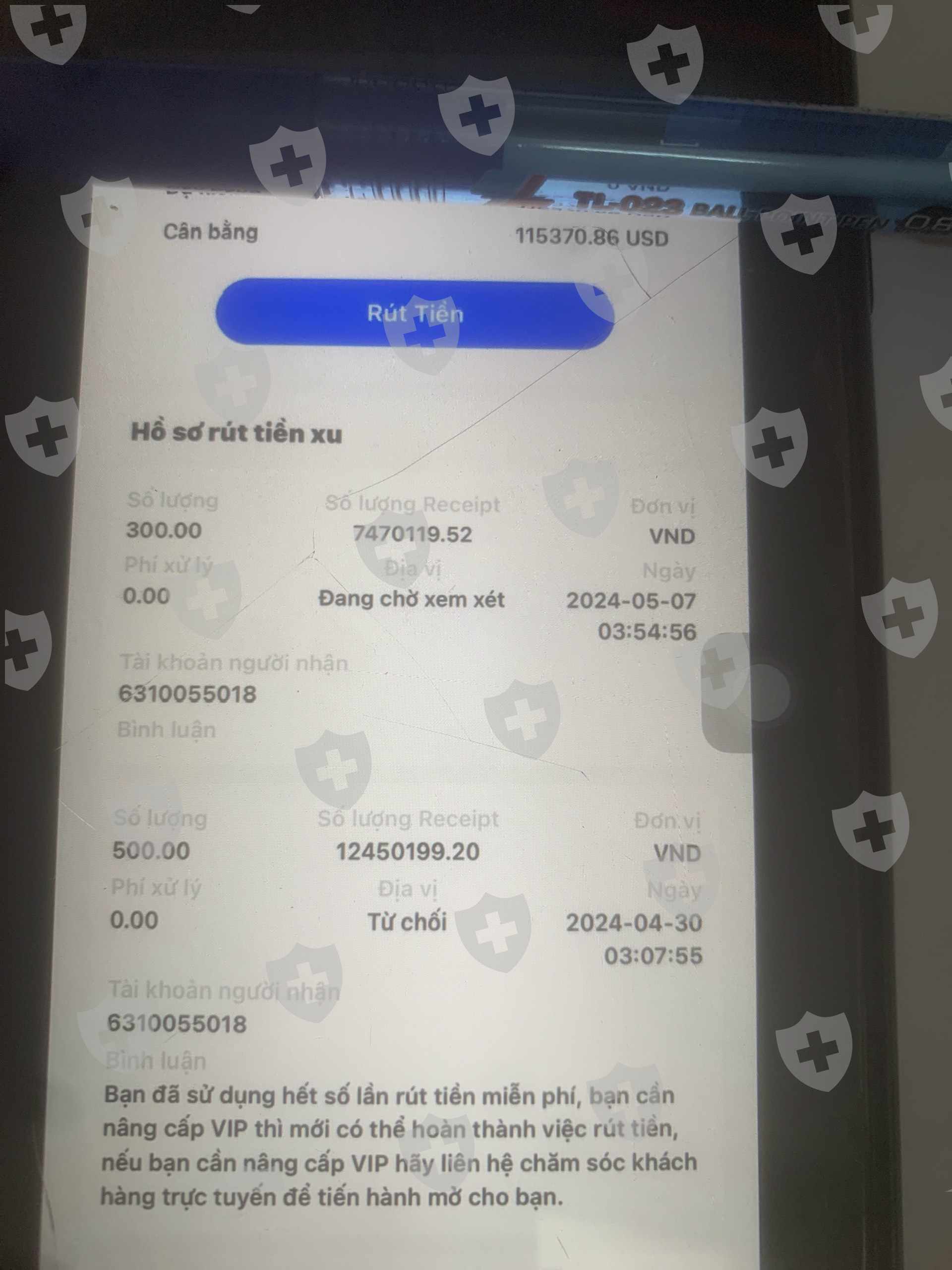 bắt nâng vip 88888$ mới cho rút tiền. khoá tk