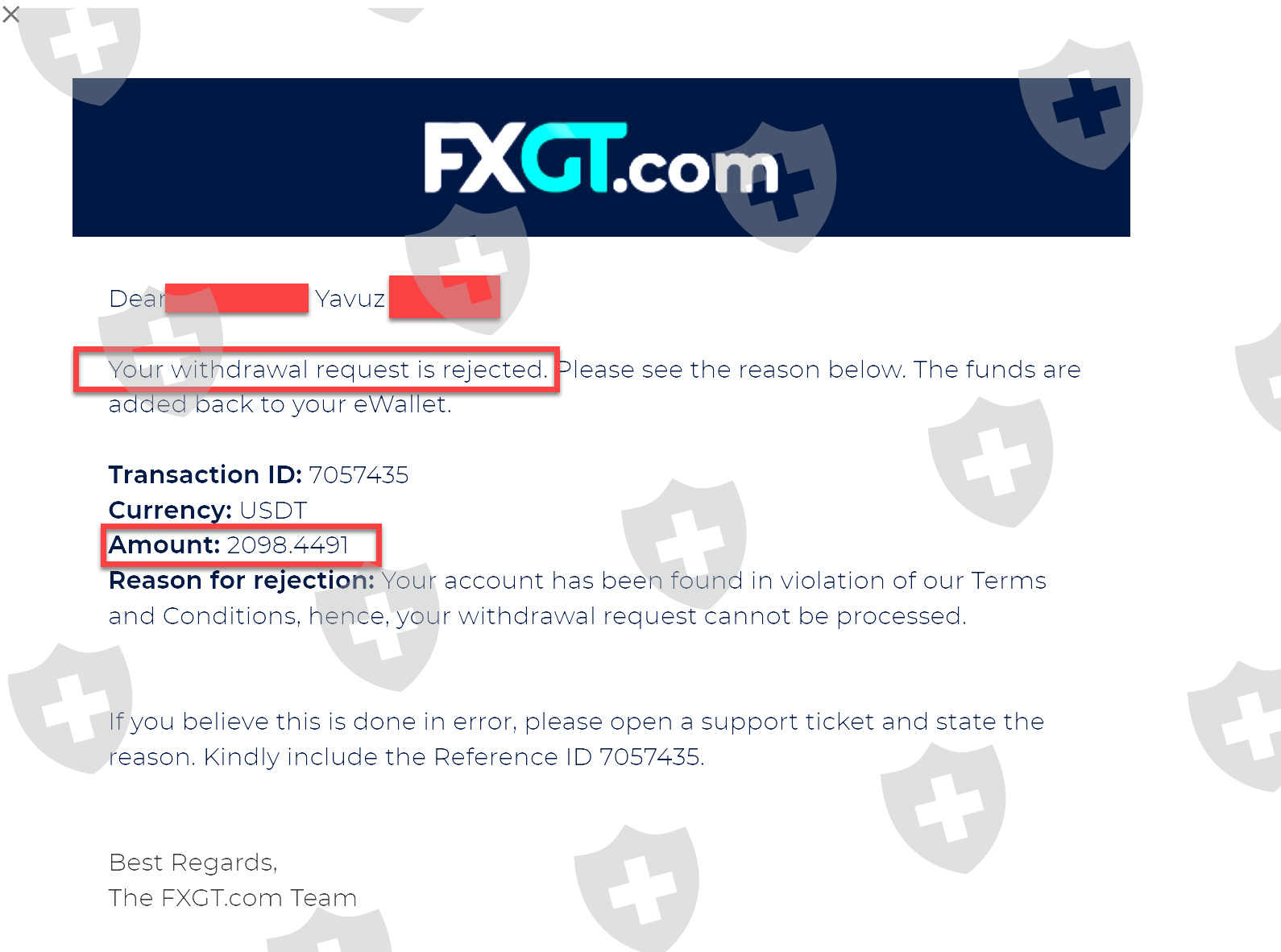 FXGT.com无故关闭了我的账户并没收了我的4098美元。