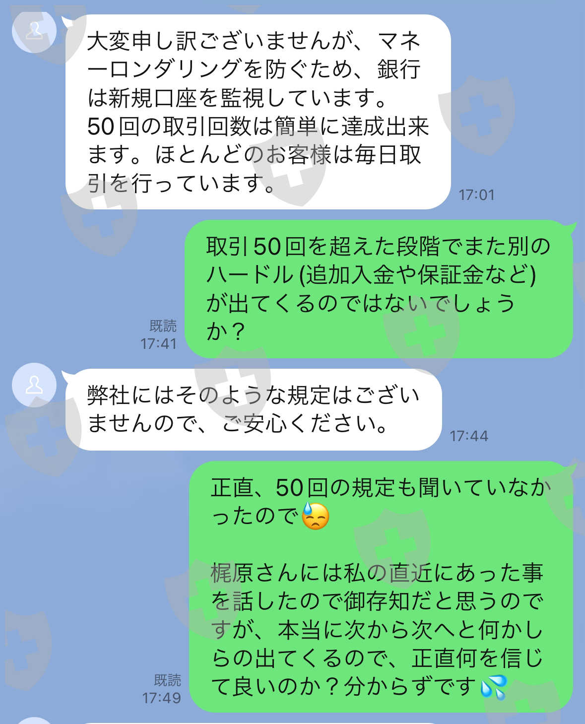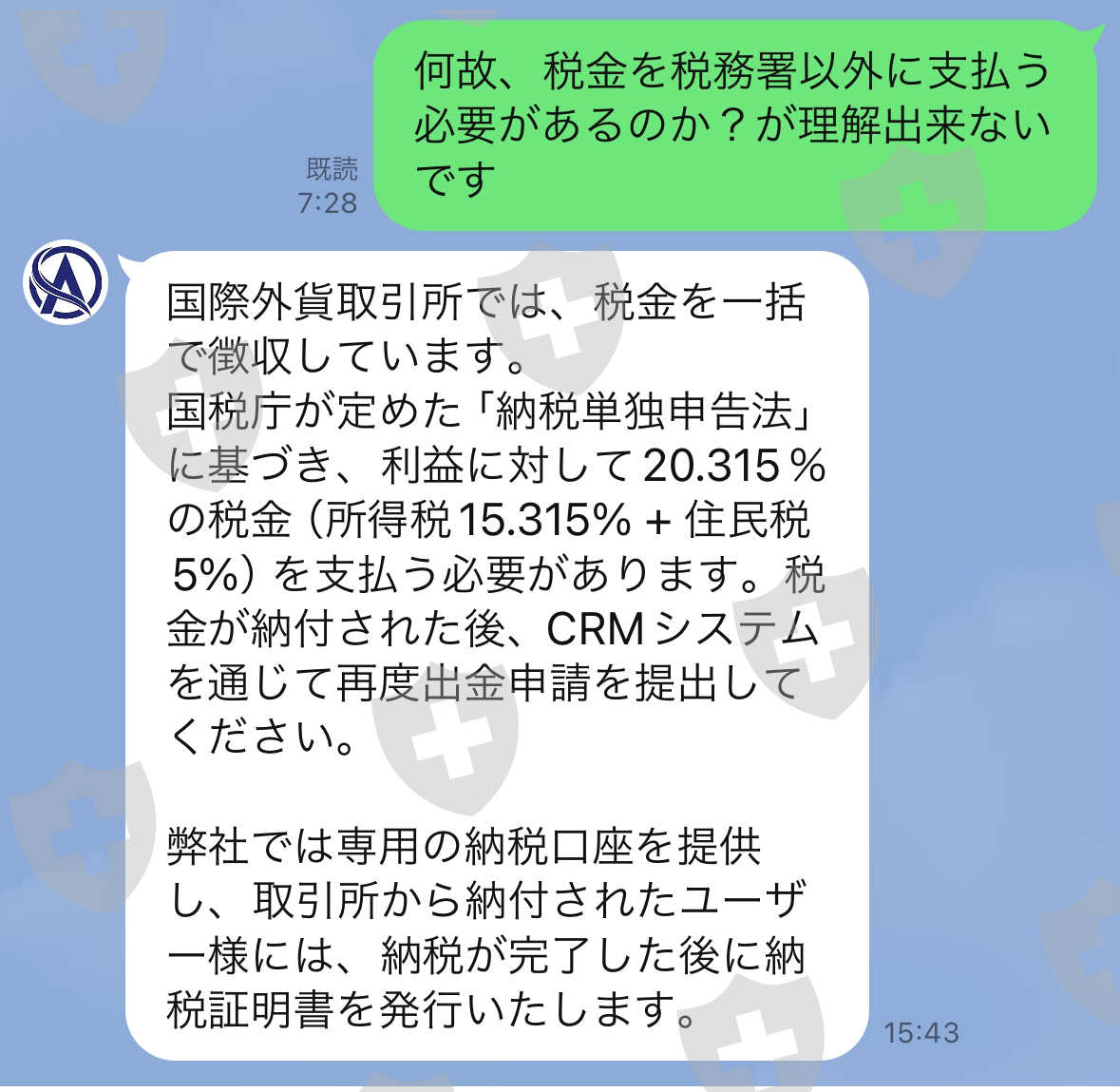 出金手続きを行ったものの、1度目は「取引回数が50回に満たない為」と言われたので50回取引回数をクリアした後に出金手続きを行ったが2回目は「利益分の税金が指定口座に振込込みがされていない為」と本来は税務署へ申告をしたうえで税金を支払うはずなのに別の指定口座への振込指示あり。