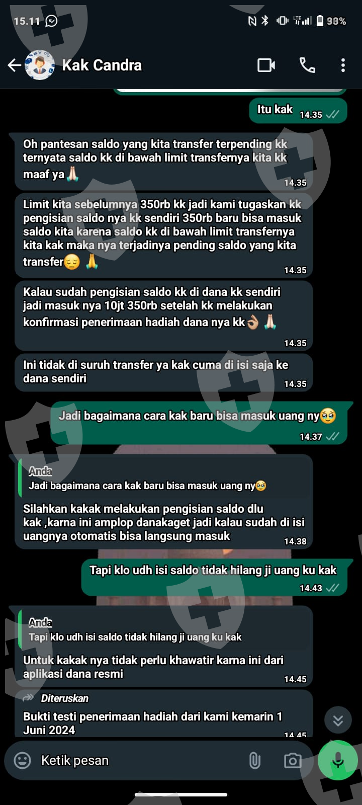 dy seolah-olah sudah tf sama saya tapi blm masuk abis itu suruh isi saldo ku biar langsung masuk uang ny tapi bukan ny menambah malah uang ku hilaang sekitar 350 RB 😭😭