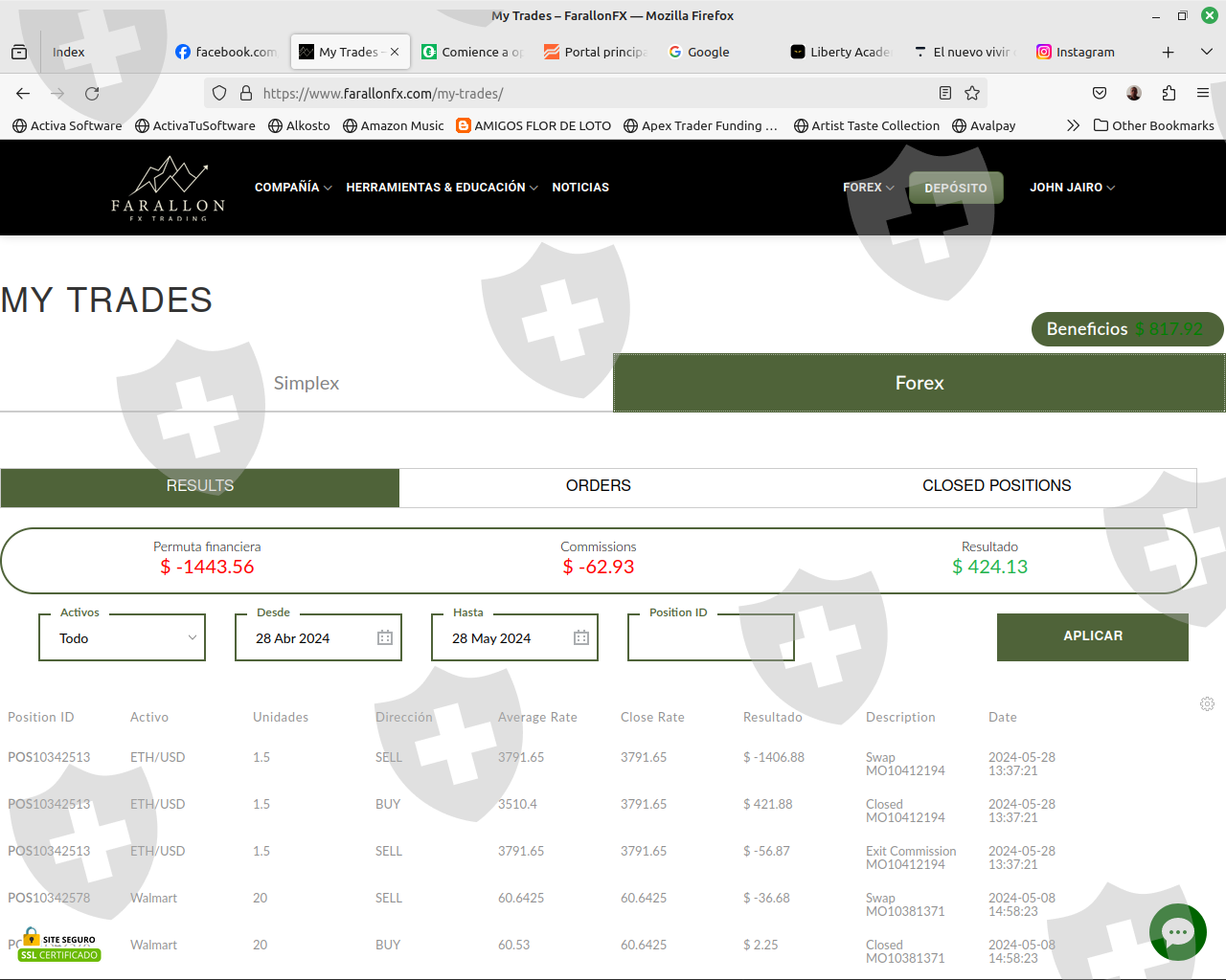 Realice dos depósitos el último a la brava, prácticamente me raptaron la tarjeta 💳, el asesor realiza una compra de ETH/USD al día siguiente se va en tendencia Bajista manteniendo la operación en rojo, asesor no se preocupe que su operación tiene una protección que si sale en Rojo la compañía asume la pérdida lo cual no fue así se cerró cuando volvió a estar positivo pero los recursos eran insuficientes para descontar PERMUTA FINANCIERA Y COMISIONES dejando mi cuenta solo con 38 dólares. DONDE ESTA LA SERIEDAD DE ESTA ORGANIZACIÓN SON UNA MANO DE ESTAFADORES....