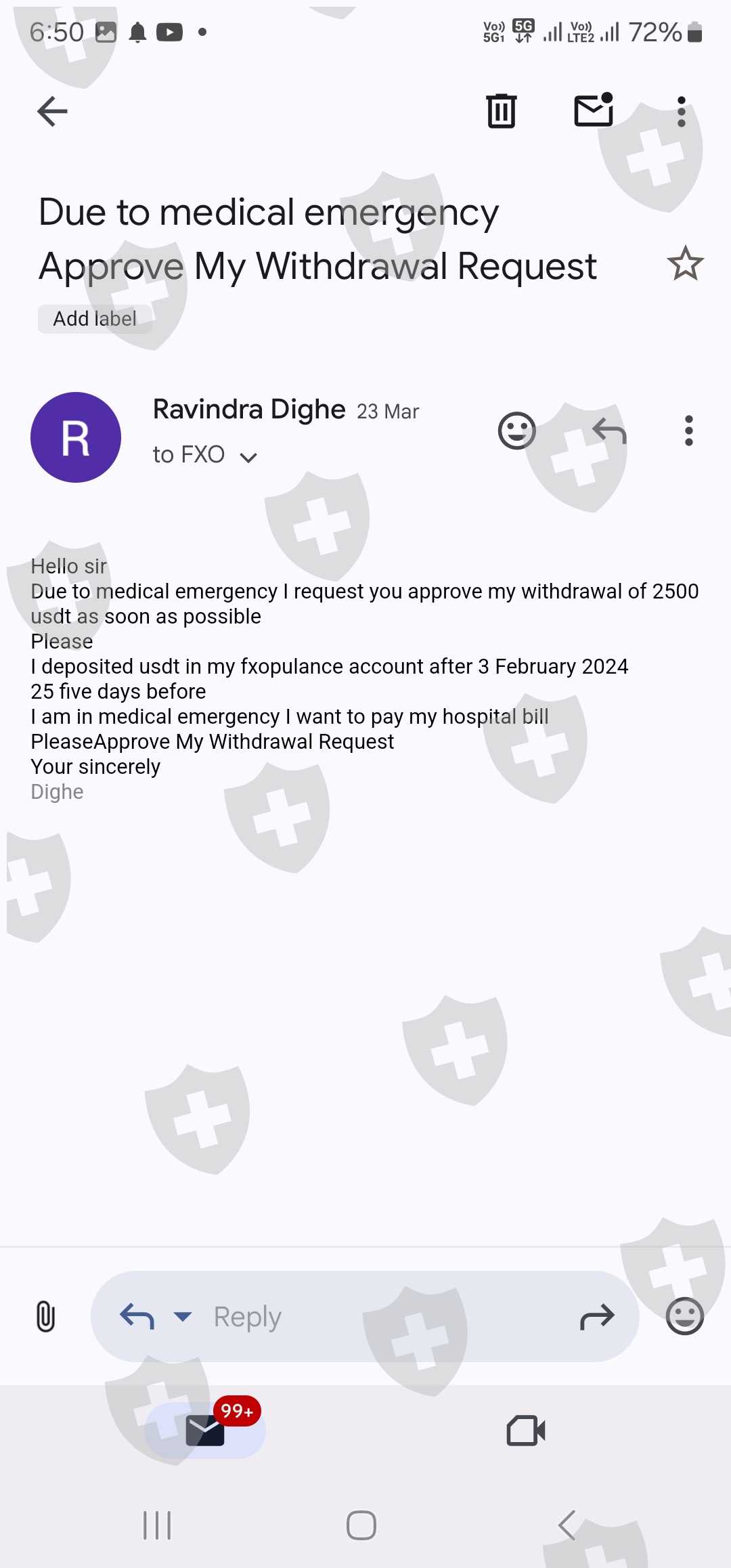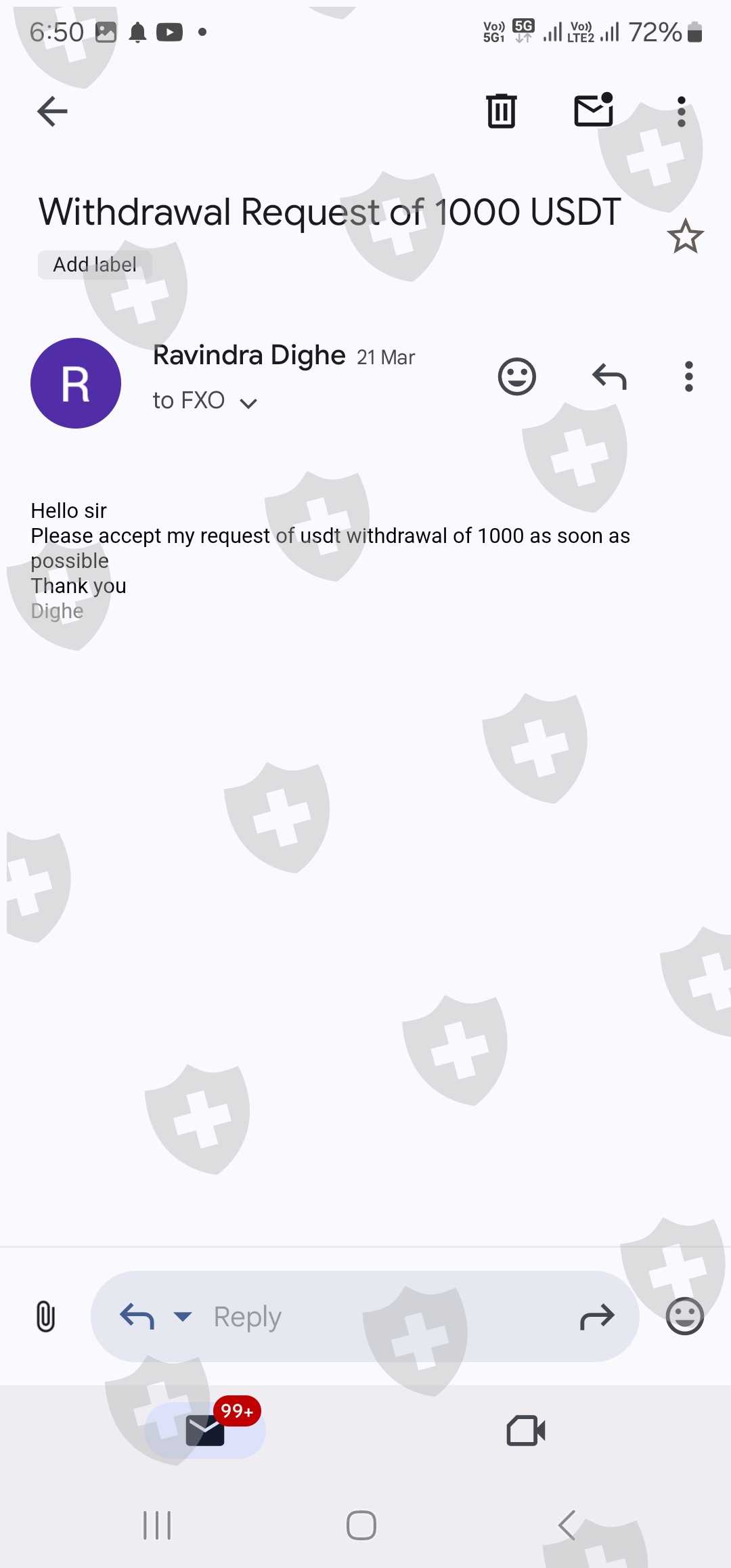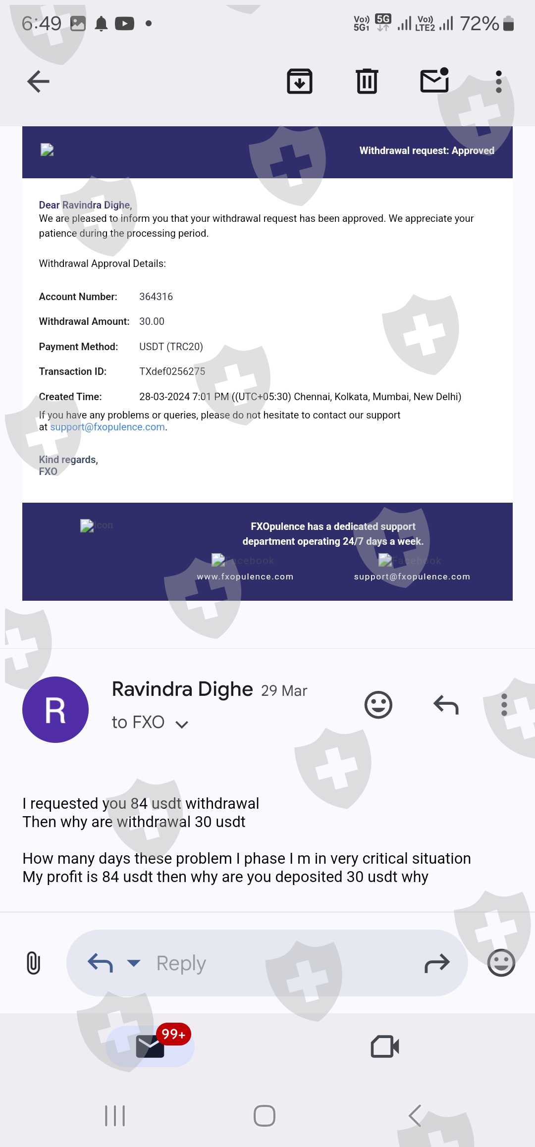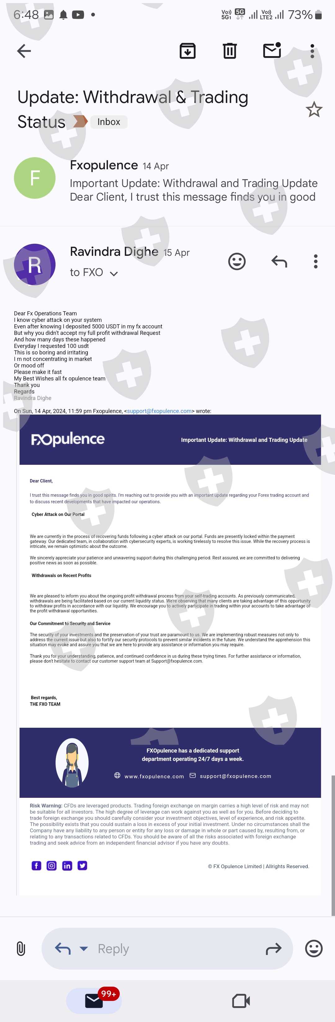 after that i many time mail fxopulance withdrawel my usdt but they mailed me 2 or 3 months we not transfer usdt due to cyber attack , then after 3 months fxopulance broker does not gave me my money