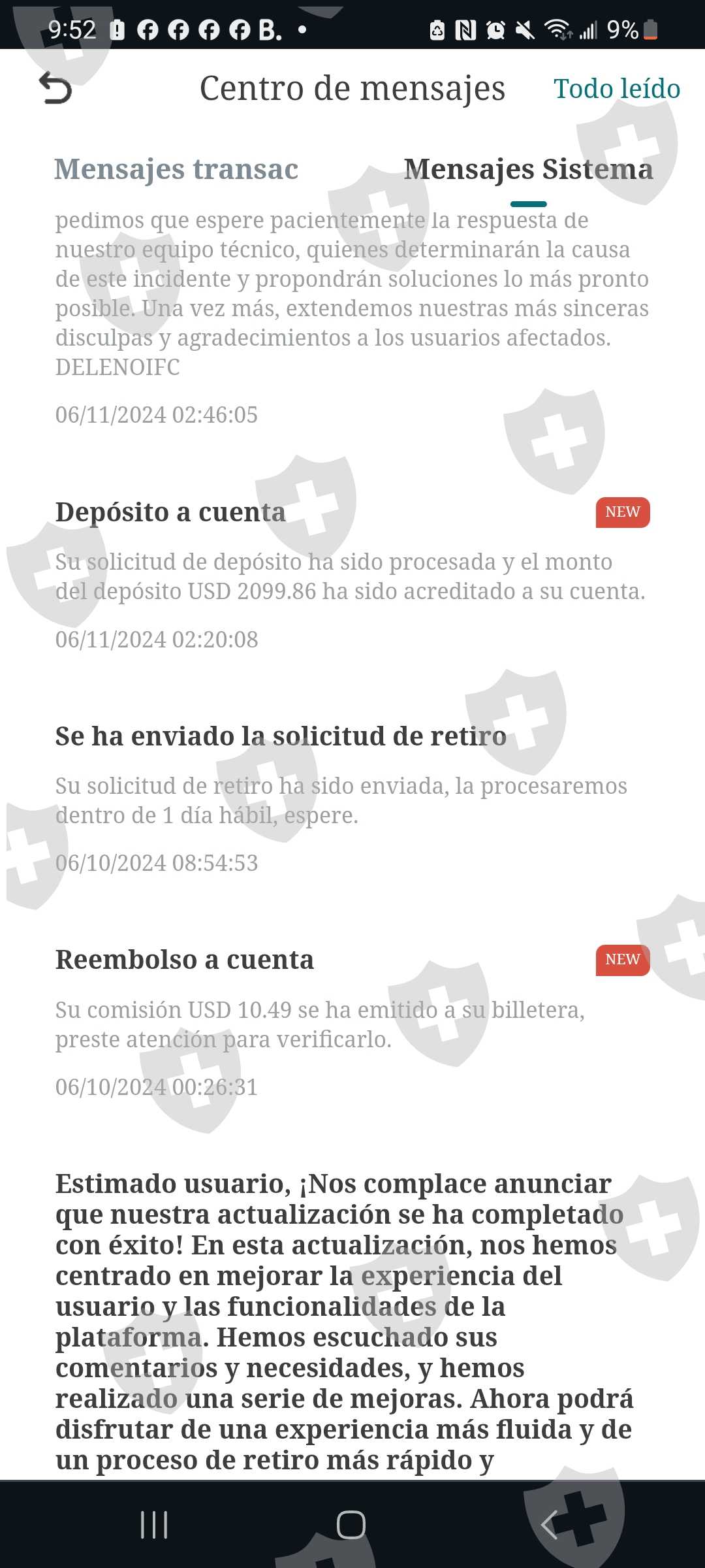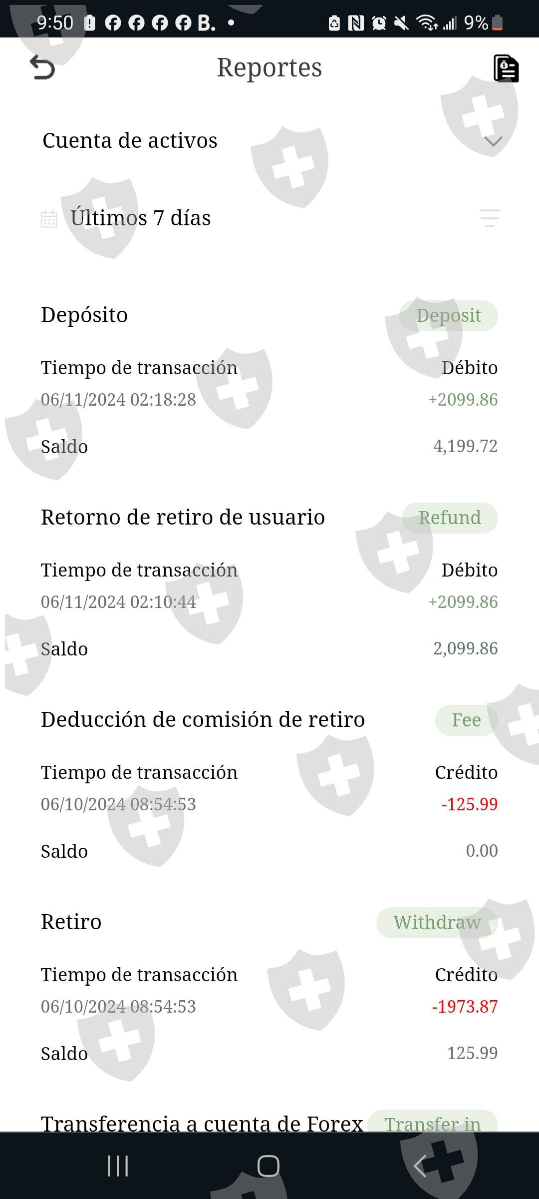 我自2024年4月以来一直是该经纪人的用户。我在4月15日开始交易,存入了198.80美元的存款;之后,在5月5日,我又存入了799美元。我与该经纪人定期进行交易,直到账户余额达到2099.86美元。自2024年6月6日以来,我一直尝试提取资金,但平台提到正在更新中,暂停提款。2024年6月10日再次申请提款,平台表示将在1个工作日内完成。然而,6月11日被拒绝,没有生效,并且由于所谓的系统错误,经纪人的余额翻倍。我只是想在规定的期限内提取我的资金,因为我已经尝试了好几天,而且平台总是出现不同的错误。非常感谢。