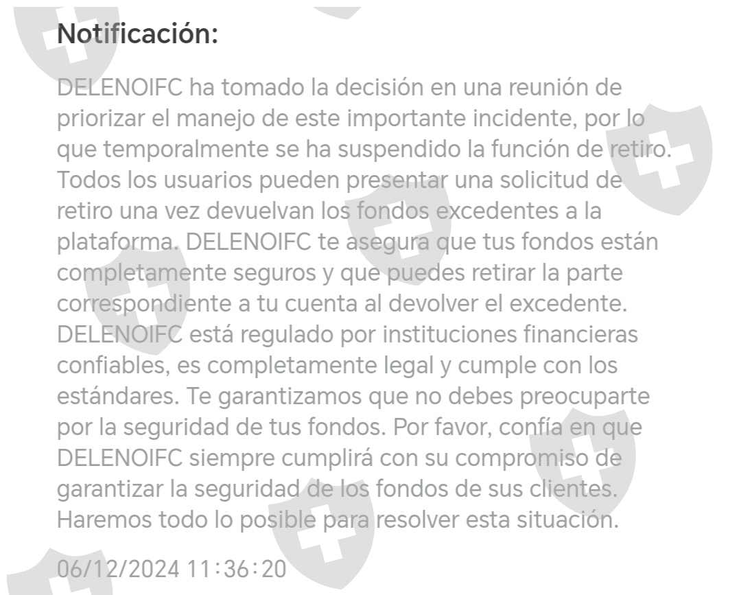 Expongo que el día 11 del mes 6 de año 2024 deleno Ifc por error en el sistema después de una actualización deposito a sus usuarios el doble de capital qué ya tenían en sus cuentas. Obligando a sus usuarios a hacer un deposito por el mismo monto para así liberar su saldo y que pueda ser retirado y bloqueando así las opciones de retiro.