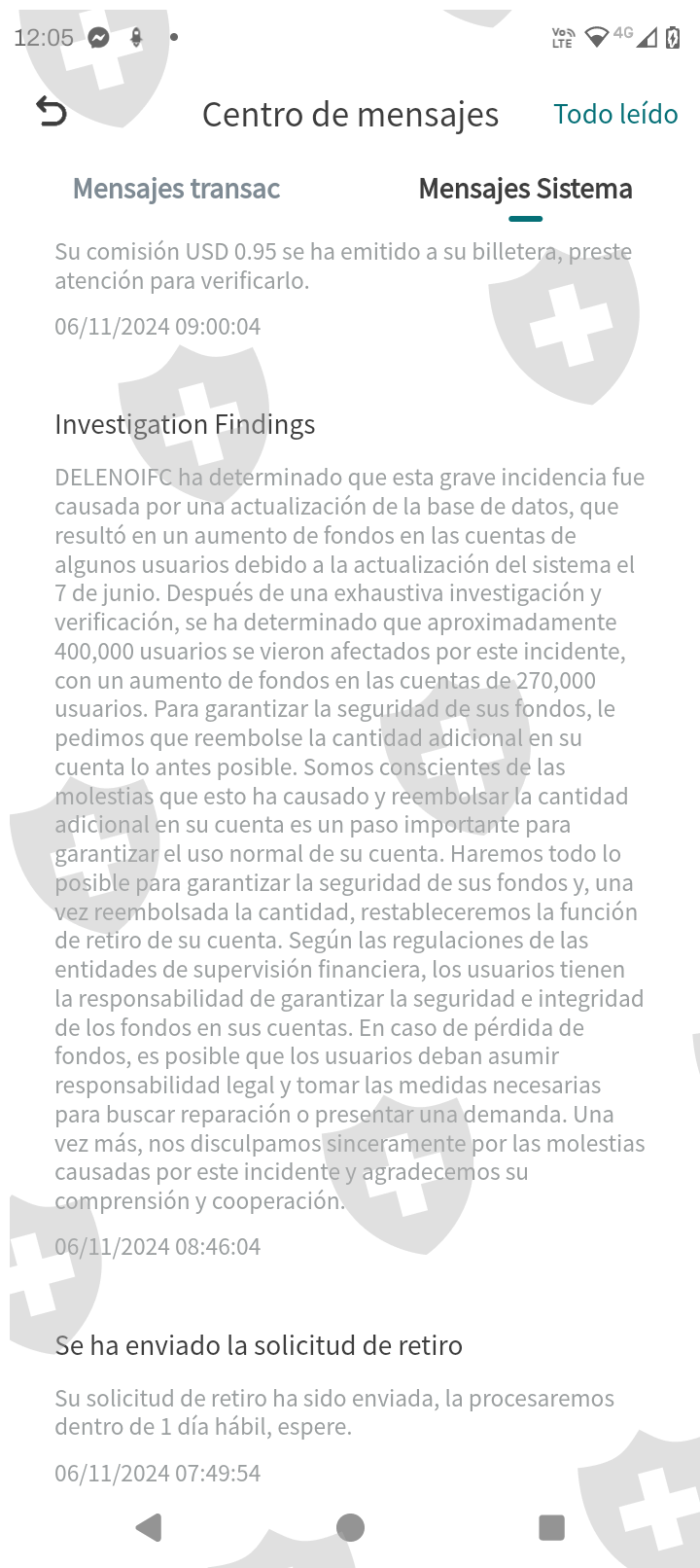 该平台声称其数据库遭受了损坏,由于这个错误并非由任何用户造成,我们的资金现在增加了100%。但是为了使用我们的资金,平台要求我们进行相应的额外存款。在我们进行存款之前,该应用程序将不允许我们进行提款。