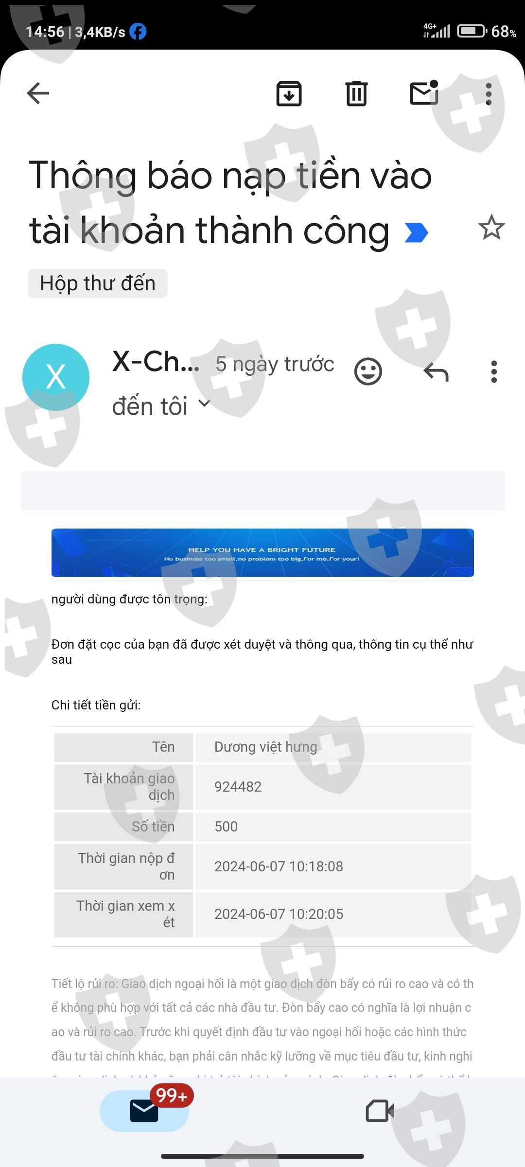 xcharter tự vào lệnh của kh, kéo độ giãn sàn lên gấp 10 lần = 464 spesd . quay thưởng kh dc 1000$ yêu cầu đủ 15 lot sau 5 ngày cắt mà ko báo từ đầu hạn 5 ngày,bonnus 35% cũng tự cắt.. do cắt đột ngột cộng giãn sàn kéo cao nên tk kh bị cháy.