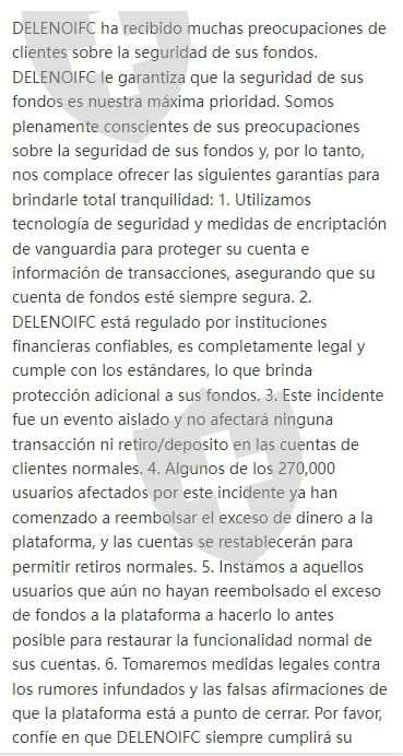 Delenoc ifc 在5天前封锁了用户的提款,答复是我们存入了我们的金额,他们将再次启用提款功能