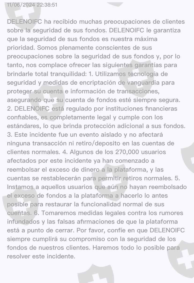 El día 11 de junio de 2024 a la 1 de la mañana, aparecieron los saldos en el broker doblados, ellos argumentan que es un incidente de seguridad, pero nos están instando a que giremos la cantidad de dinero que ellos sobregiraron a nuestras cuentas, para poder que nos desbloqueen la opción de retiros, no permiten que nadie retire de la plataforma, pero si quieren que giremos de nuestro bolsillo el excedente que ahí está en la cuenta de fondos, ellos no dan una solución viable, cómo por ejemplo habilitar una billetera para reembolsarles el dinero a sus cuentas, no, la solución que nos dan es que giremos de nuestro efectivo, para ellos tomar ese dinero y de esa manera habilitar la opcion de retiro de la cuenta.