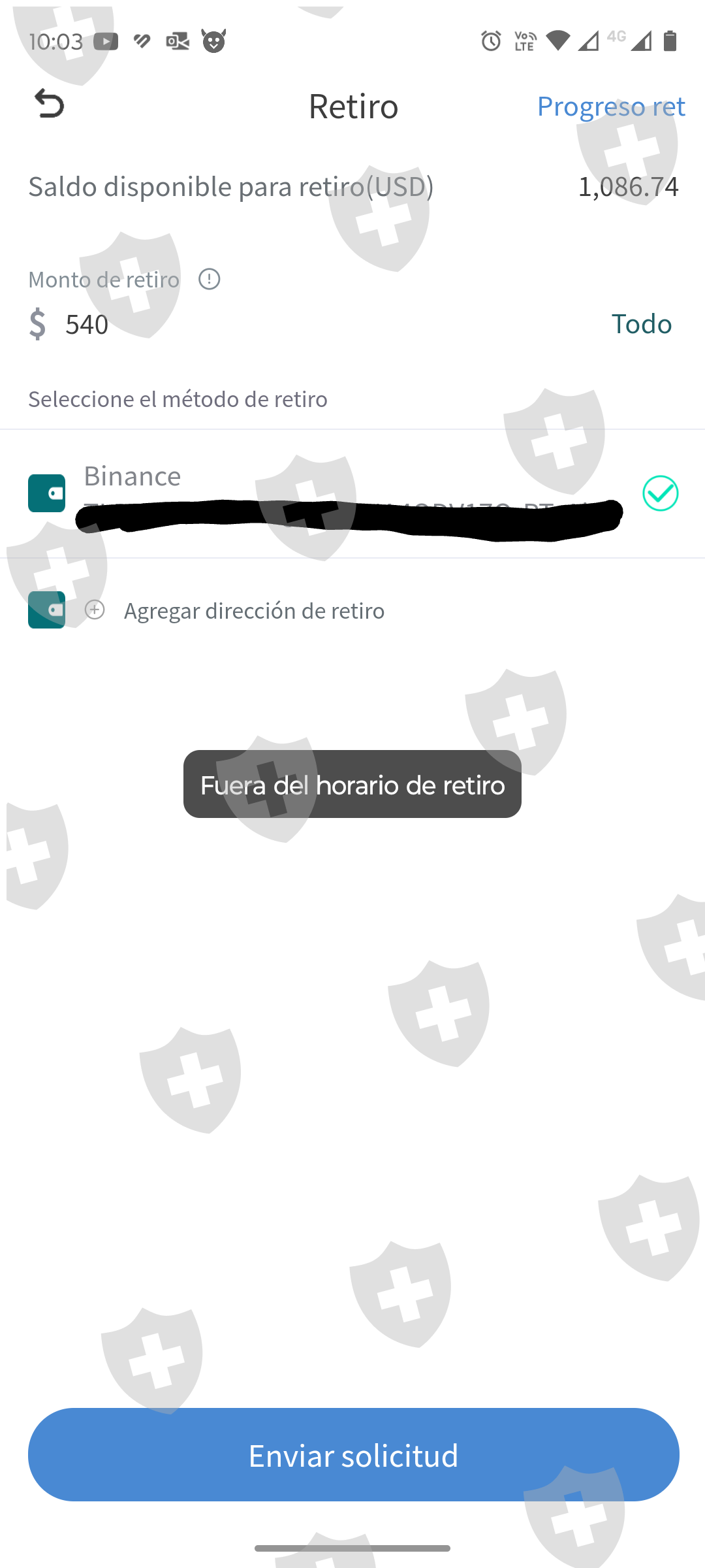 Ellos por error duplicaron los fondos de varias cuentas y para poder retirar solicitan invertir nuevamente el mismo valor, de lo contrario lo que ya tenía en el broker anteriormente no lo puedo retirar. Al momento de dar en retirar sale "Fuera de horario de retiro" es decir que está inhabilitado he intentado a toda hora.