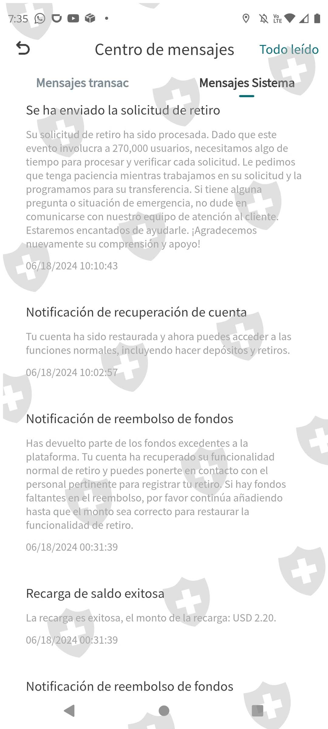 hecho el proceso de reembolso y retiro y hasta el momento no me han devuelto mi capital comparto las pruebas para que se pueda investigar y no responden mensajes de atención al cliente