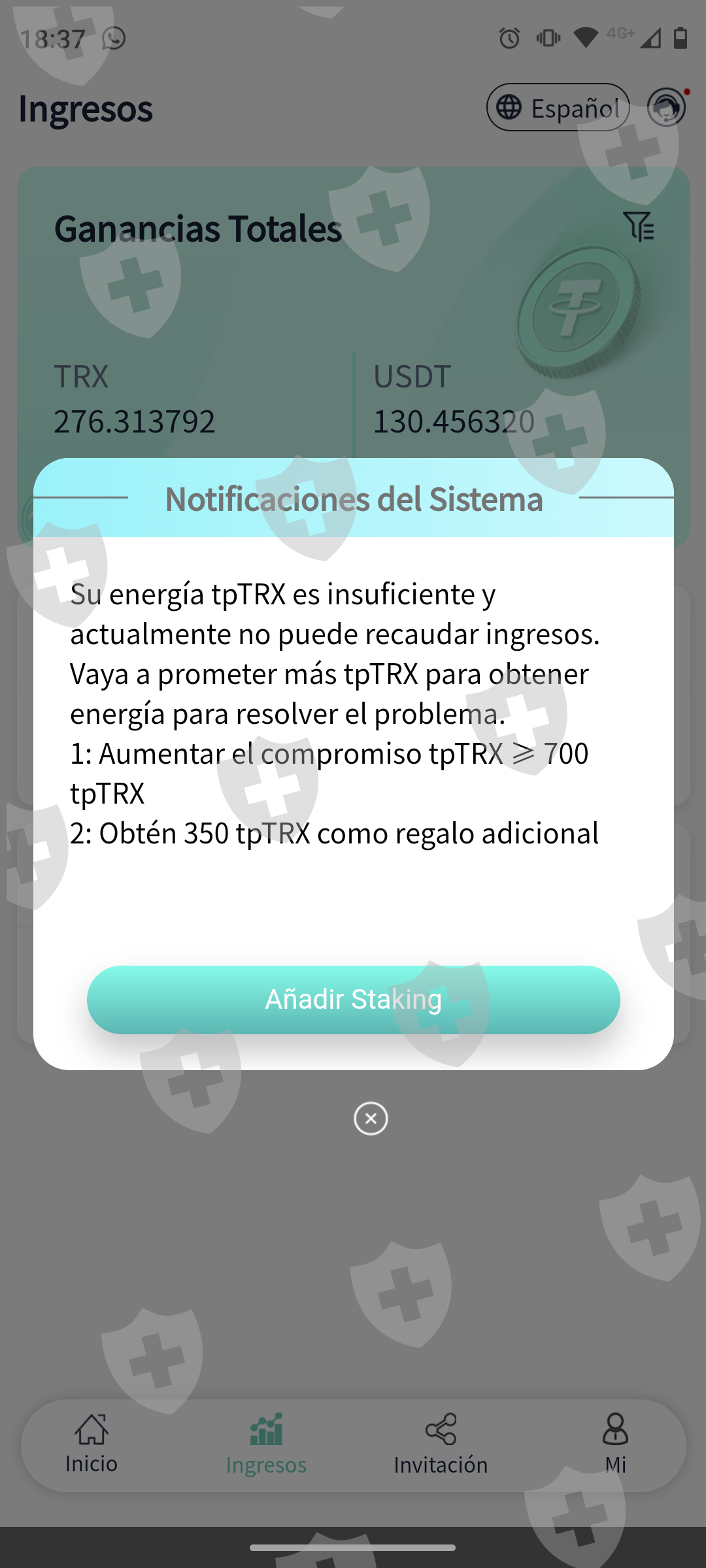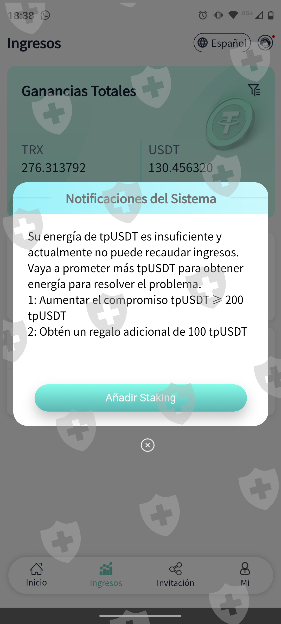 Empezamos bien con la epp tpusdt invertí 10 usdt recupere y le gane y como venía bien empecé a poner más plata y después ya no me dejó sacar más dinero y tengo bloqueado 700 TRX y 230 usdt puse lo que me pedía la app y no me dejó sacar más y ahora me pide que ponga 200 usdt porfavor si alguien me puede ayudar