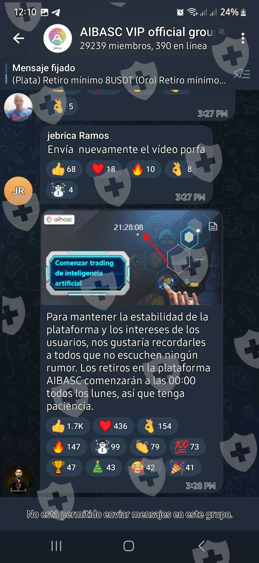 Ahí también esta el retiro qué había realizado y estos se desconectaron de sus grupos y más nunca han vuelto a conectarse ni a responder sus mensajes