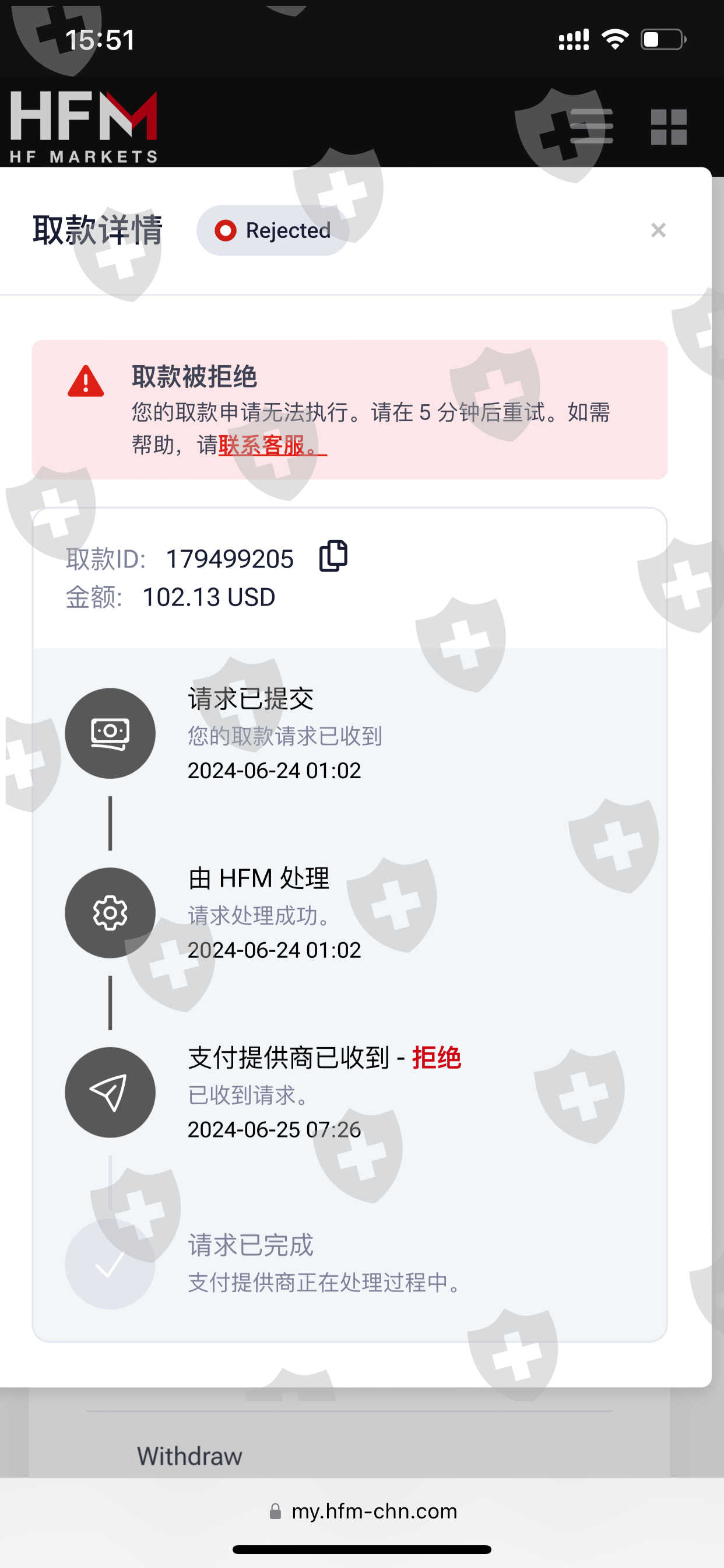 本人从6月24日至今尝试出金,全部以失败为结果,联系过客服,客服让我以邮件回复