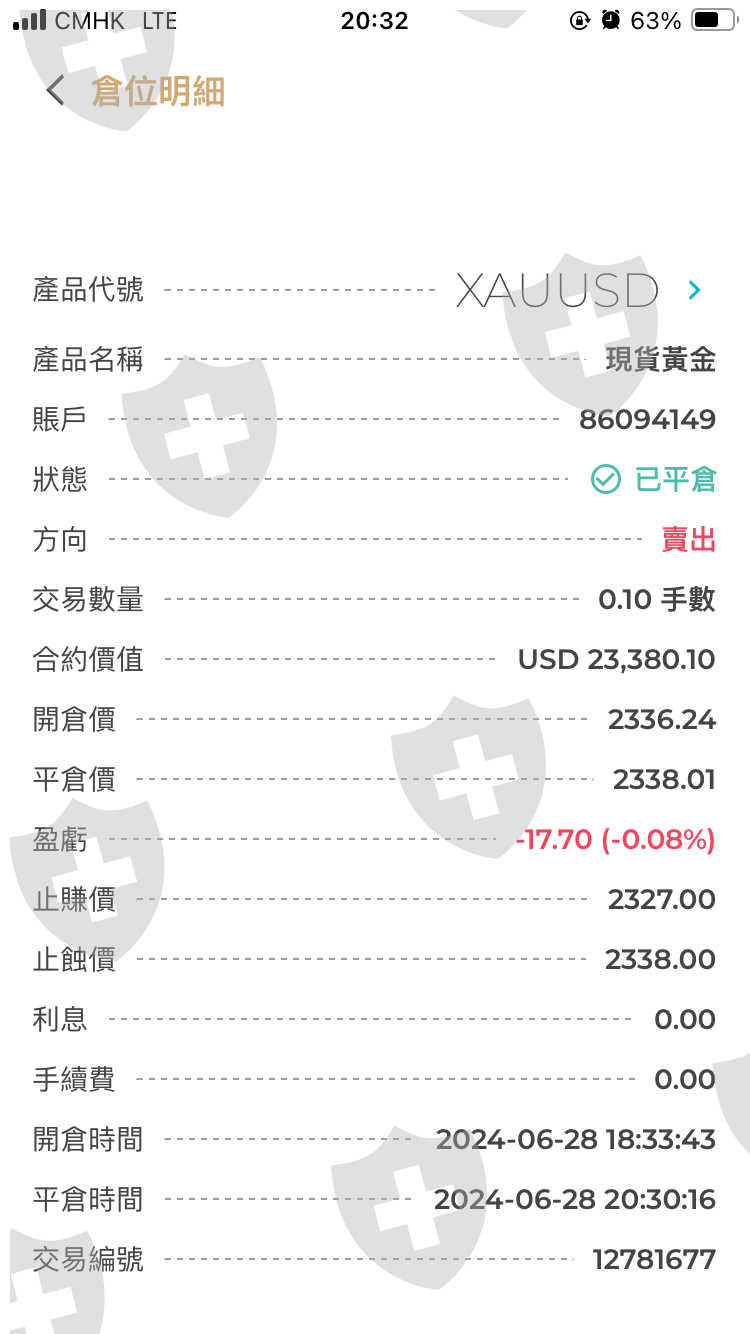 5月28日, 晚上20:30,有一个美国的数据, 我在只损价设置了2338,在出数据后最高点只是2337.24, 但是已经自动平仓。