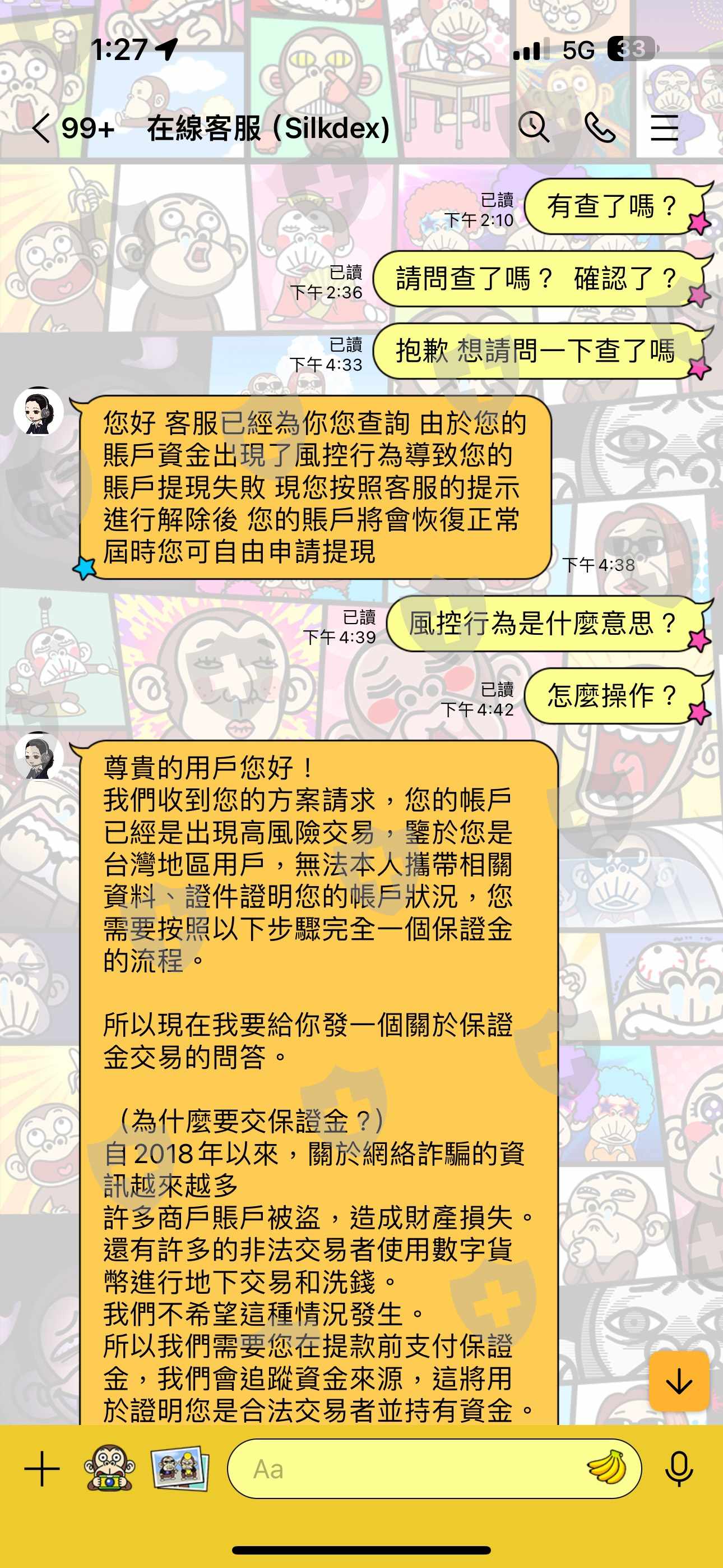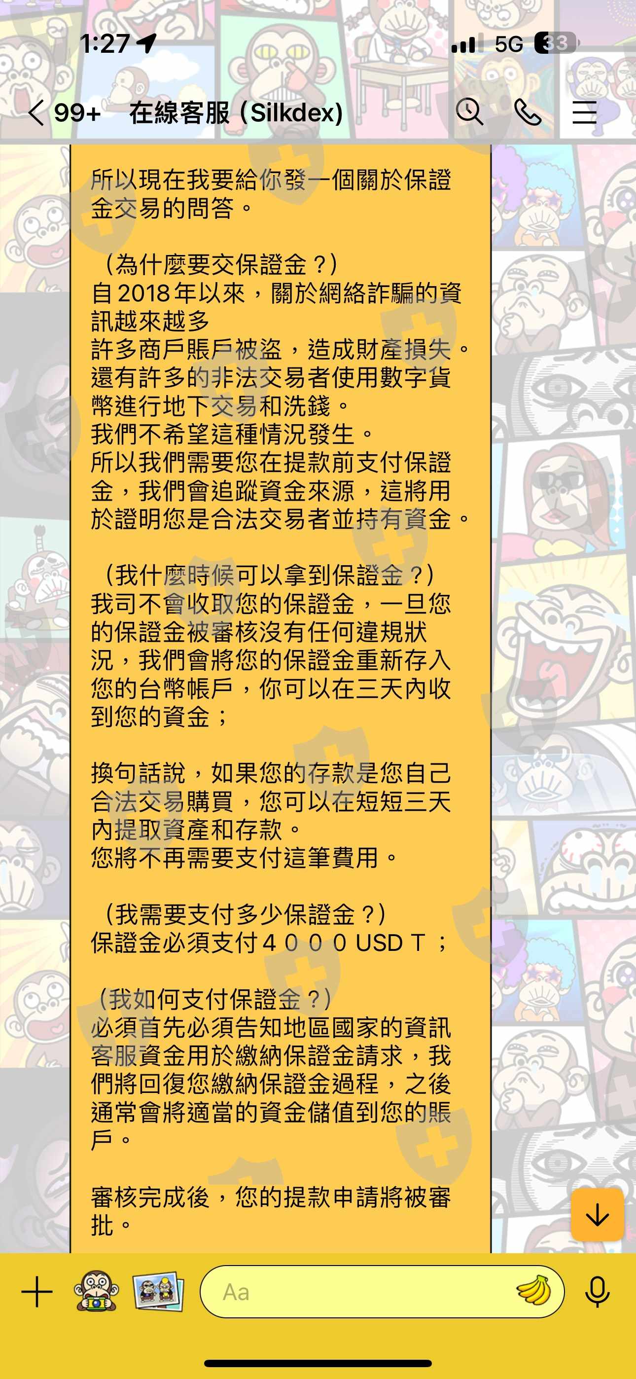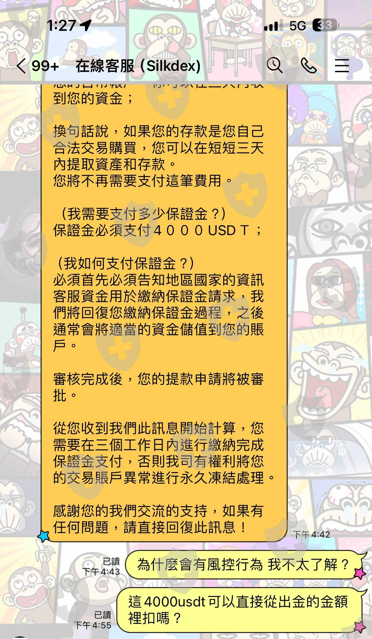 一開始小額出金是正常的後面覺得不對勁要全額出金才開始說帳戶控行為需繳交保證4000ustd 到現在錢還是卡在裡面